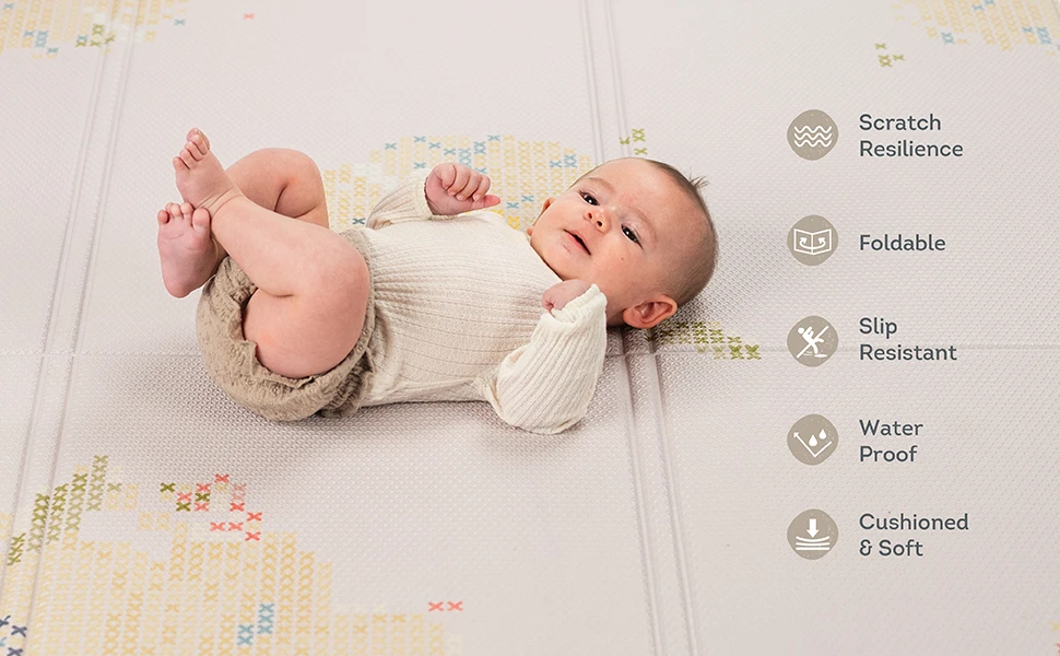 Měkká a bezpečná - tlumí nárazy, chrání před chladem a tvrdou podlahou - ideální pro první pokusy o lezení a převracení