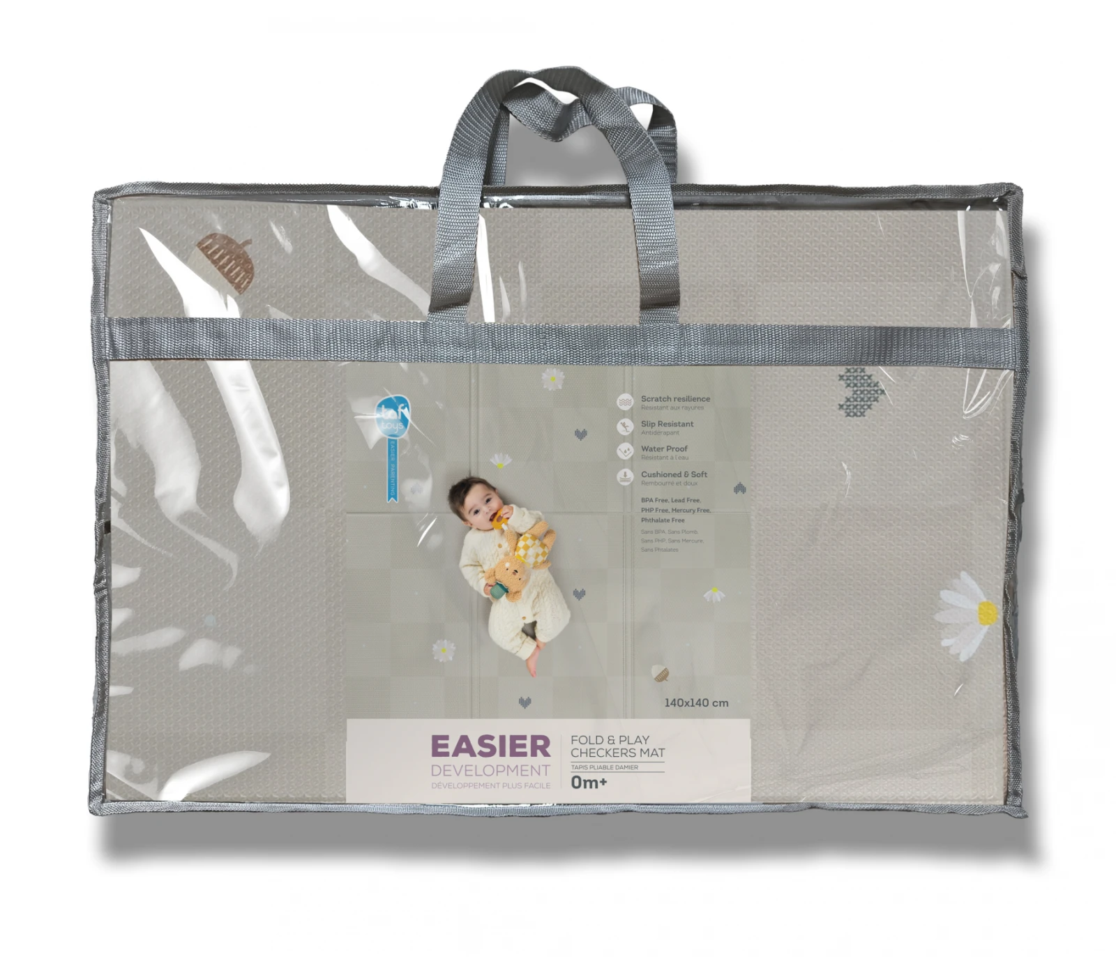 Praktická velikost - rozměr 140 x 140 cm poskytuje dostatek prostoru na hraní, po složení (do rozměru 45 x 70 cm) ji snadno uložíte do tašky a vezmete s sebou kamkoli potřebujete