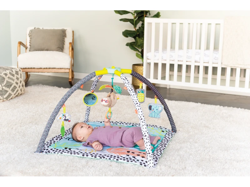 Deku s hrazdou díky středovému dílu Twist & Fold snadno složíte do kompaktního tvaru pro přenášení. Můžete ji tak využívat pro zabavení vašeho dítěte nejen doma, ale i na cestách.