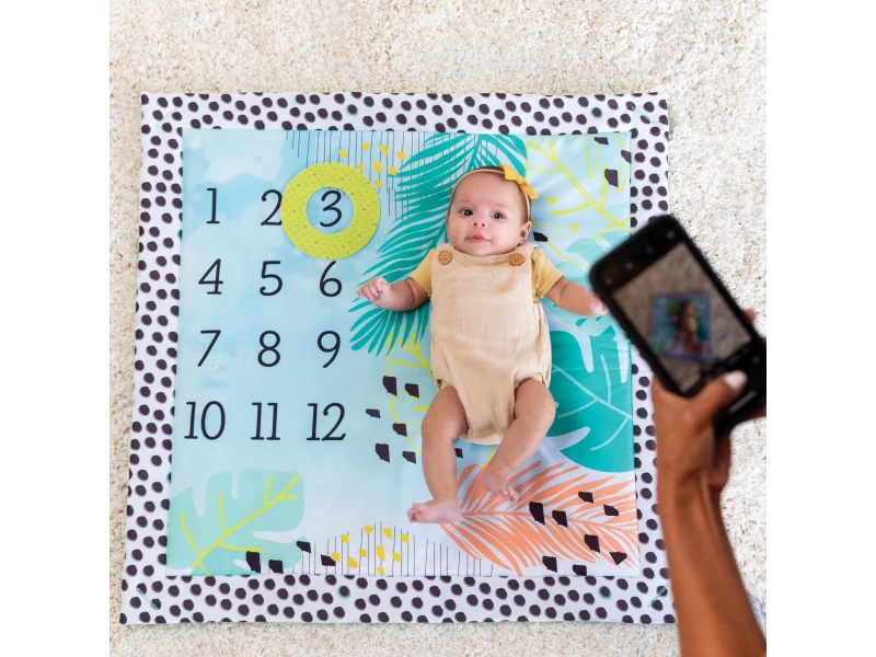 Deka vám zároveň umožní originálním způsobem pravidelně dokumentovat vývoj vašeho dítěte. S pomocí kroužku na dece označíte číslo 1 - 12, které odpovídá věku vašeho miminka v měsících a dítě na dece vyfotíte. Až budete slavit jeho první narozeniny, můžete si prohlédnout svou sérii fotografií od narození a sledovat, jakým neuvěřitelným vývojem za první rok života vaše dítě prošlo.