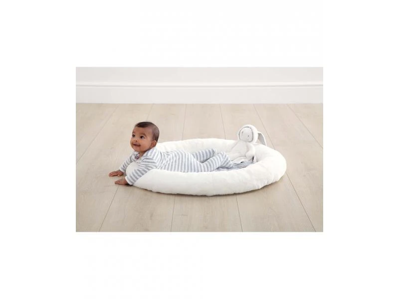 Hrací deka ve tvaru útulného hnízdečka je ideální pro miminko v chladných obdobích roku. Měkké vyvýšené okraje deky pokryté hebkým plyšem vytvářejí pocit bezpečí pro dítě a současně jej podněcují ke hře na bříšku. Svítící mráček a další zavěšené chrasticí či pískací hračky lákají dítě ke zkoumání a pozorování.