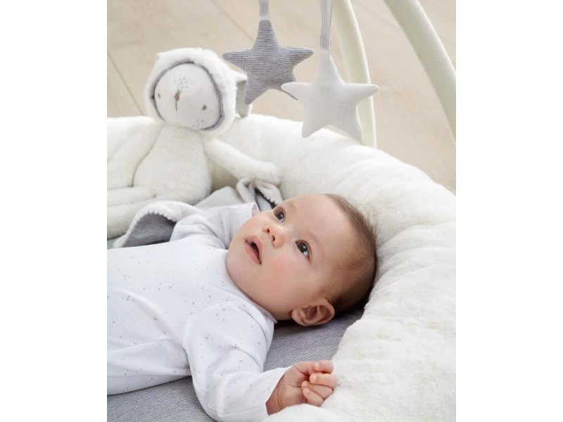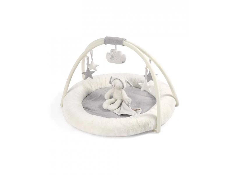Kromě zavěšených hraček je součástí hrací deky i velký roztomilý králíček, který se může stát nepostradatelným společníkem v postýlce dítěte.