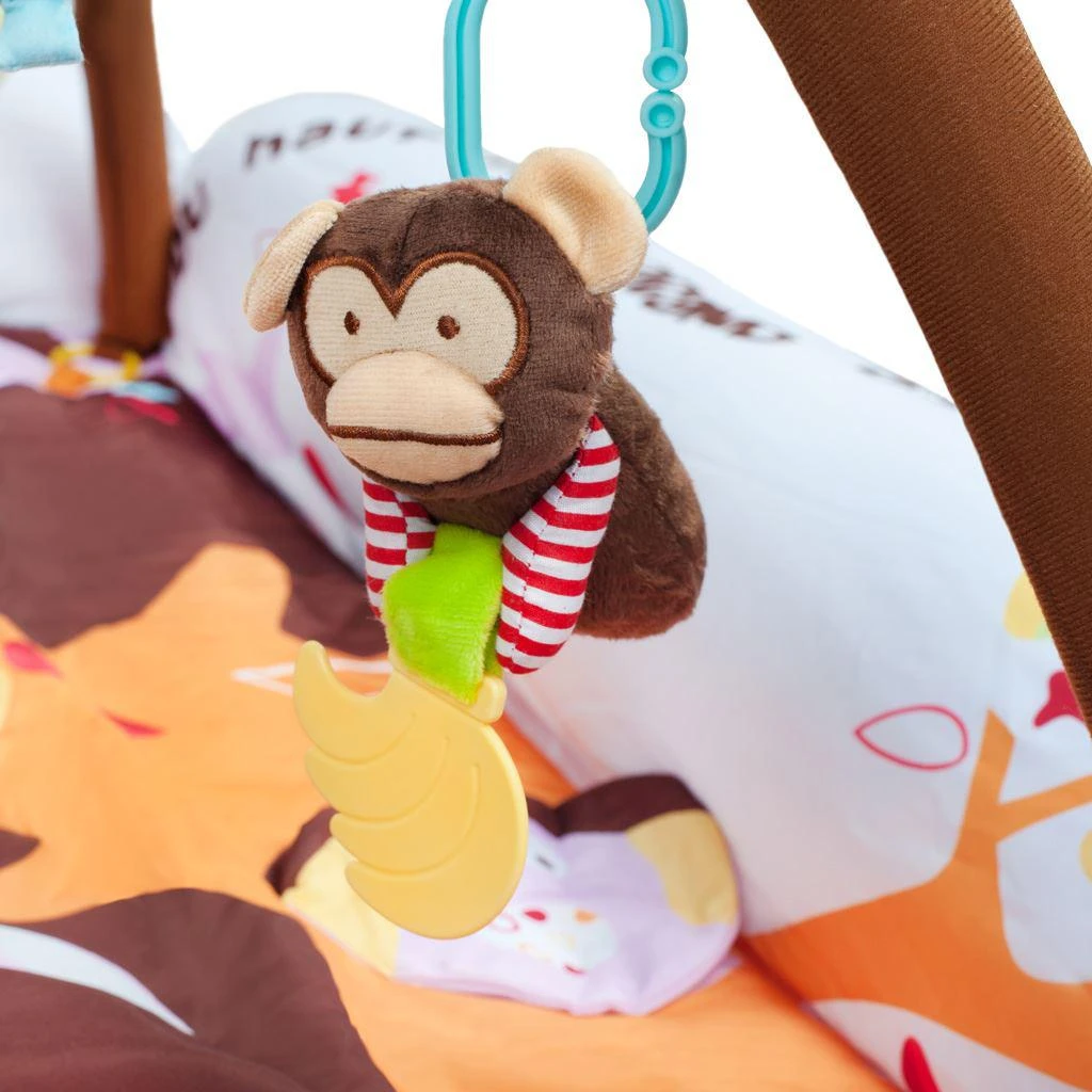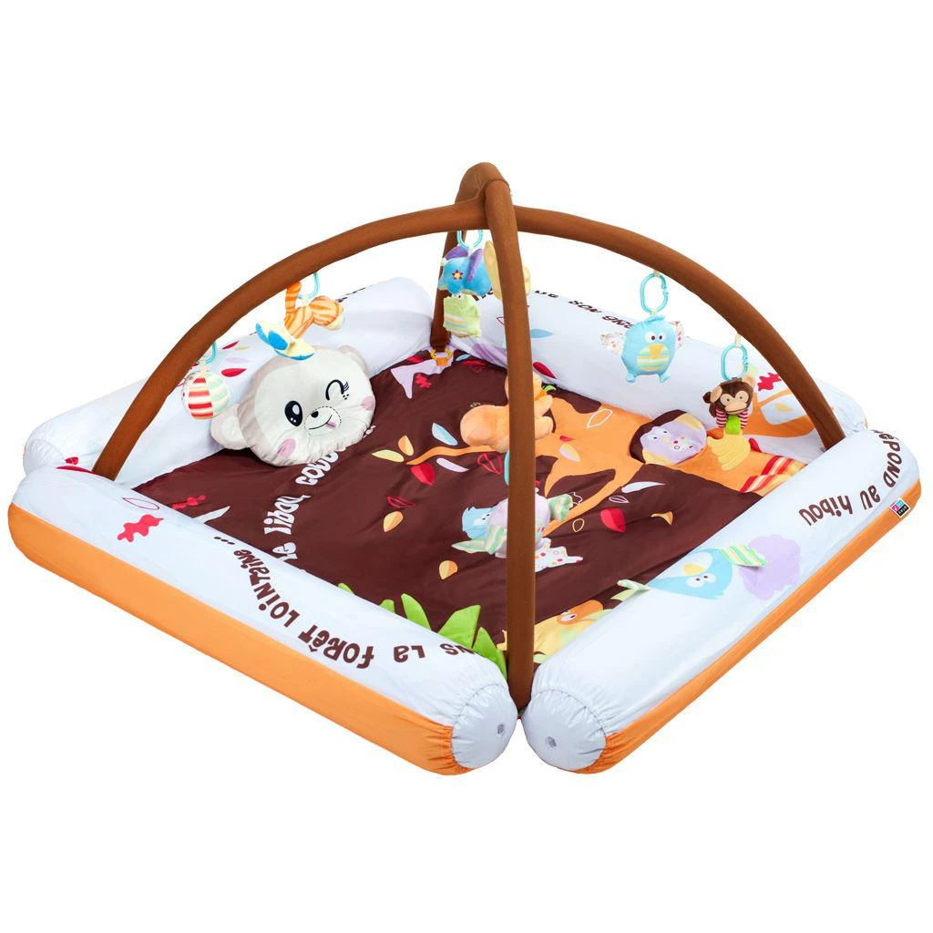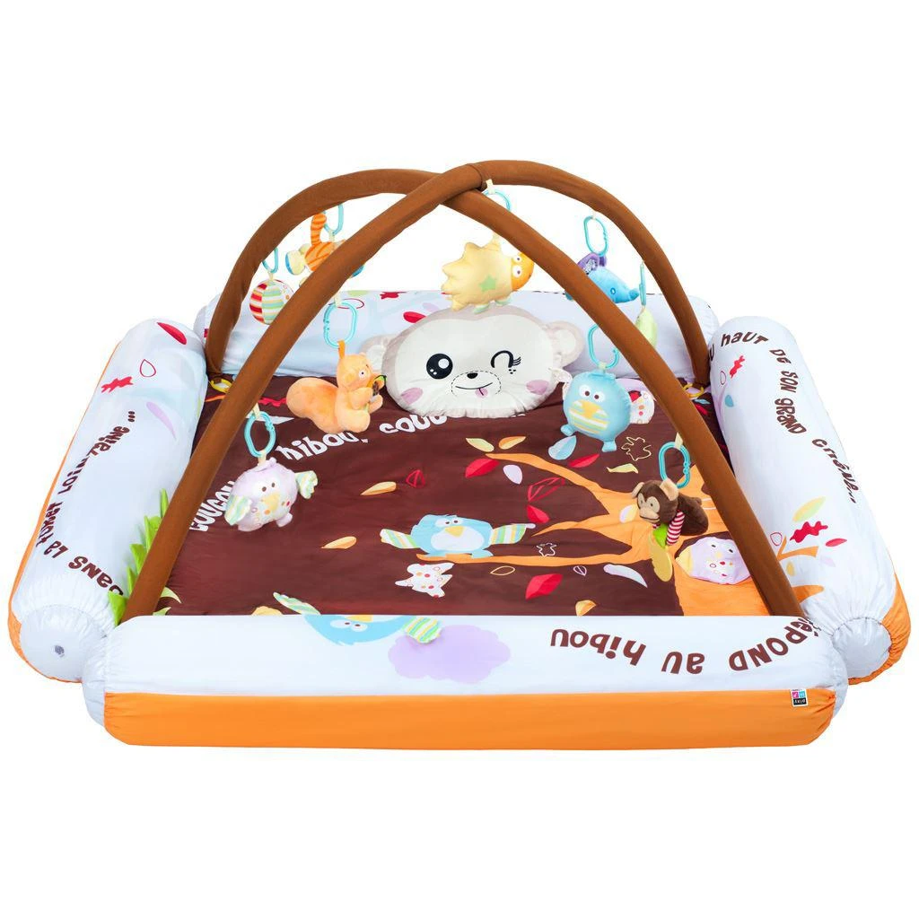 Krásná originální vzdělávací hrací deka s melodií a hrazdou PlayTo rozvíjí dětskou představivost díky poznávaní barev a tvarů. Hrací deka v krásných zářivých barvách s motivy zvířátek se skládá z měkké podložky s polštářkem, dvou odnímatelných hrazdiček a čtyř nafukovacích mantinelů, které vytváří vašemu děťátku chráněný a útulný prostor. Nalezneme zde různě suštící části, plyšové hračky s pískátkem, rolničkou nebo kousátkem. V ptáčkovi je ukrytý hrací modul, po jehož stlačení ptáček vydává příjemné melodie. Tyto hračky zlepšují pozorovací schopnosti a koordinaci pohybů, rozvíjí smysly hmatu, zraku a sluchu. Všechny hračky lze jednoduše sundat a používat samostatně v kočárku nebo postýlce. Lze ji použít doma i venku. Díky jednoduché konstrukci a dodávané tašce lze deku lehce přenášet. Pořiďte Vašemu miminku pohádkové místo pro hraní i odpočinek. Pro PlayTo je důležitá vaše spokojenost a pohodlí vašeho miminka, a proto nabízíme tuto roztomilou, pohodlnou, krásně barevnou a měkoučkou hrací deku, která poskytne každému děťátku dokonalý komfort. Pokud deku zrovna nepoužíváte, snadno ji složíte a uchováte tak před prachem nebo případným poškozením. Vhodné pro děti od 3 měsíců Vnější rozměry 123x123 cm Vnitřní rozměry 95x95 cm Výška hrazdičky od země cca 60 cm Výška mantinelů cca 20 cm Váha 2,3 Kg