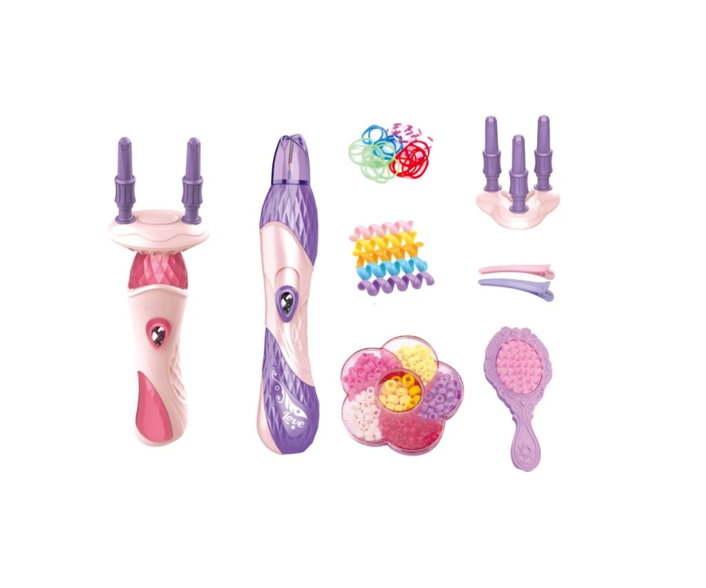 Hrací set na vlasy 2v1 s korálky a gumičkami je určený pro malé parádnice, které si chtějí samy vytvářet originální účesy plné barevných detailů. Tento kreativní set kombinuje dvě hlavní funkce – zaplétání vlasů a jejich zdobení korálky, což dává dětem možnost experimentovat s různými styly a barvami. Součástí balení jsou dvě hlavní pomůcky v jemných odstínech růžové a fialové, které jsou ergonomicky tvarované tak, aby se s nimi snadno manipulovalo.