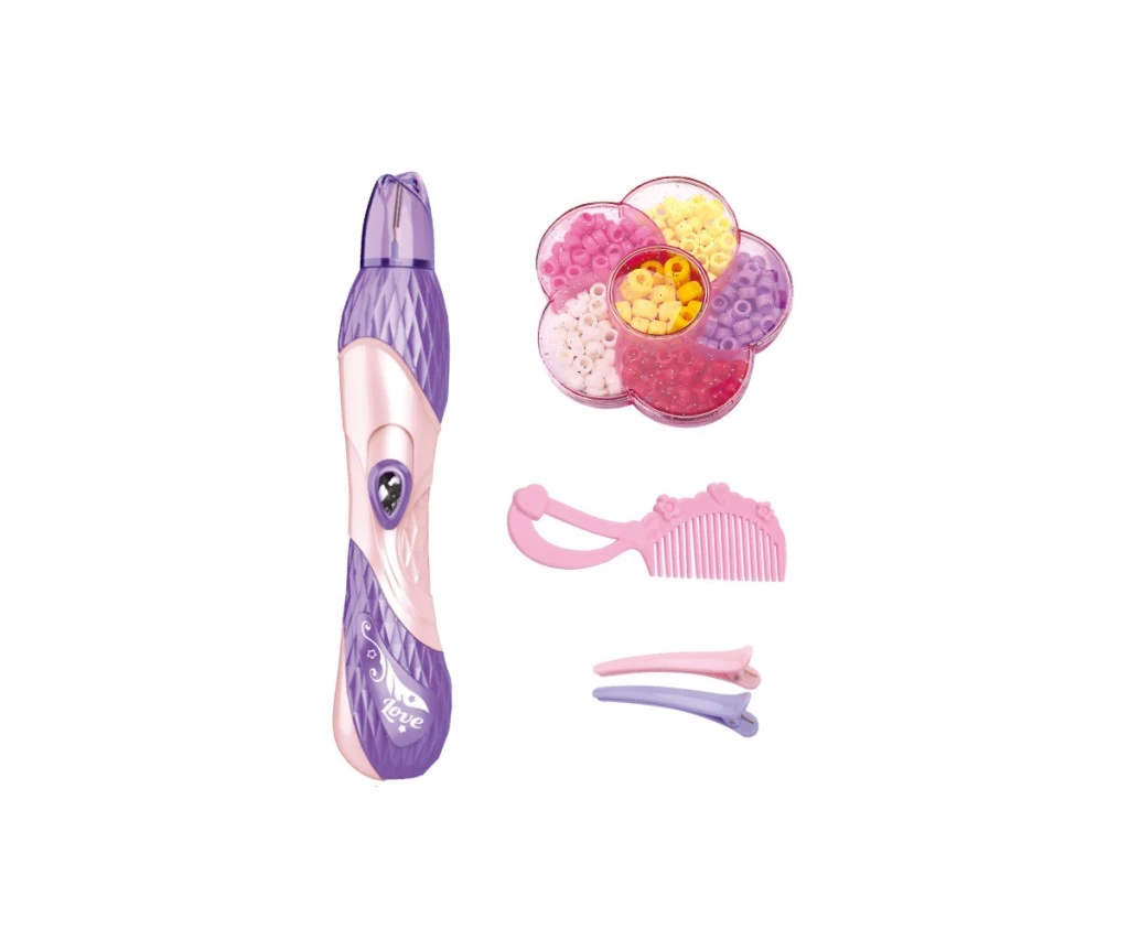 Hrací set na vlasy s korálky je určený pro malé parádnice od 3 let, které si rády tvoří jedinečné účesy a experimentují s barevnými doplňky. Tento kreativní set umožňuje jednoduchou aplikaci barevných korálků do vlasů pomocí speciálního aplikátoru, který je ergonomicky navržený a snadno se ovládá. Aplikátor je kombinací růžové a fialové barvy se zajímavým vzorem, což z něj dělá atraktivní nástroj, který děti rády používají.