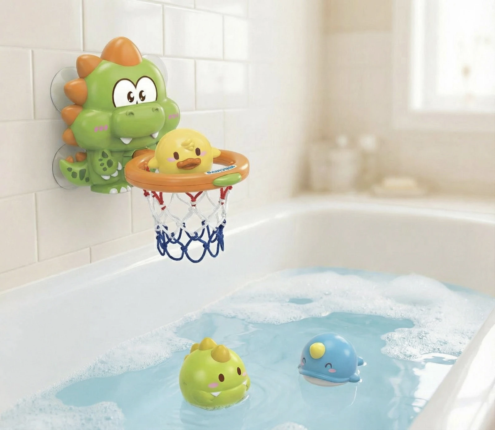 Hračka je vyrobena z bezpečných materiálů, má hladké tvary a je vhodná pro děti od 3 let. Dino se snadno připíná, snadno se používá a vnáší do koupele hravý prvek, který děti motivuje trávit čas ve vodě s úsměvem. To promění koupání v aktivní a veselou hru, kterou si děti budou chtít opakovat znovu a znovu.