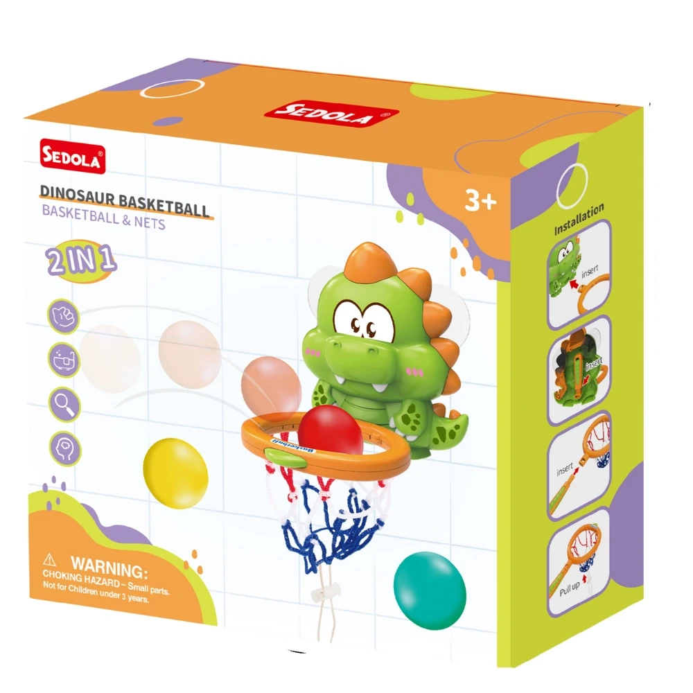 Díky systému 2 v 1 mohou děti připevnit basketbalový koš na dinosaura a trénovat přesnost házením míčů přímo do koše. Druhou možností je připevnit kruh na rukojeť, což dětem umožní chytat a lovit míčky pod vodou, což podporuje jejich motorické schopnosti a koordinaci.