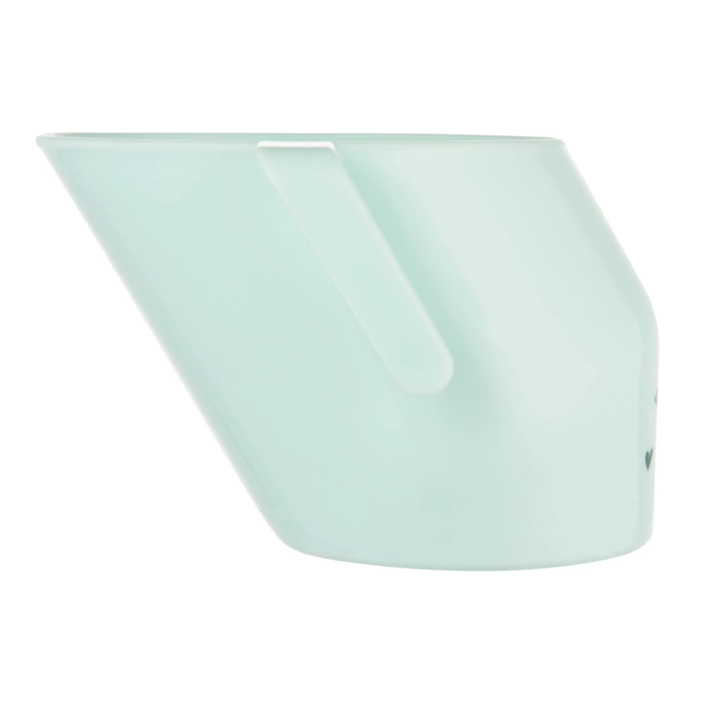 Zkosený boční okraj umožňuje pití bez zaklánění hlavy, což pomáhá snižovat riziko udušení.