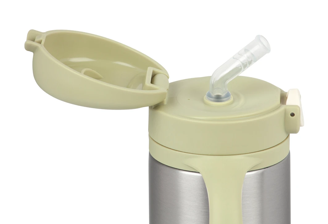 Zaklapávací silikonové brčko s víčkem je zárukou bezpečného přenášení v tašce.