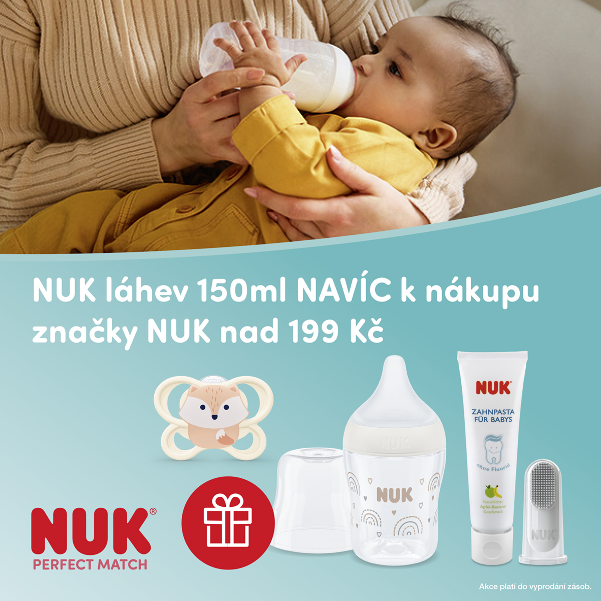 NUK je přední německá značka specializující se na kojenecké potřeby a produkty pro miminka, která již desítky let patří mezi špičku na trhu. Ve spolupráci s lékaři a odborníky vyvíjí inovativní dudlíky, lahve a další potřeby pro děti, které podporují přirozený vývoj a maximální komfort miminek. Produkty NUK vynikají vysokou kvalitou, bezpečností a důrazem na detail, díky čemuž si získaly důvěru rodičů po celém světě. Objevte osvědčenou kvalitu NUK a dopřejte svému dítěti to nejlepší již od prvních dnů života.