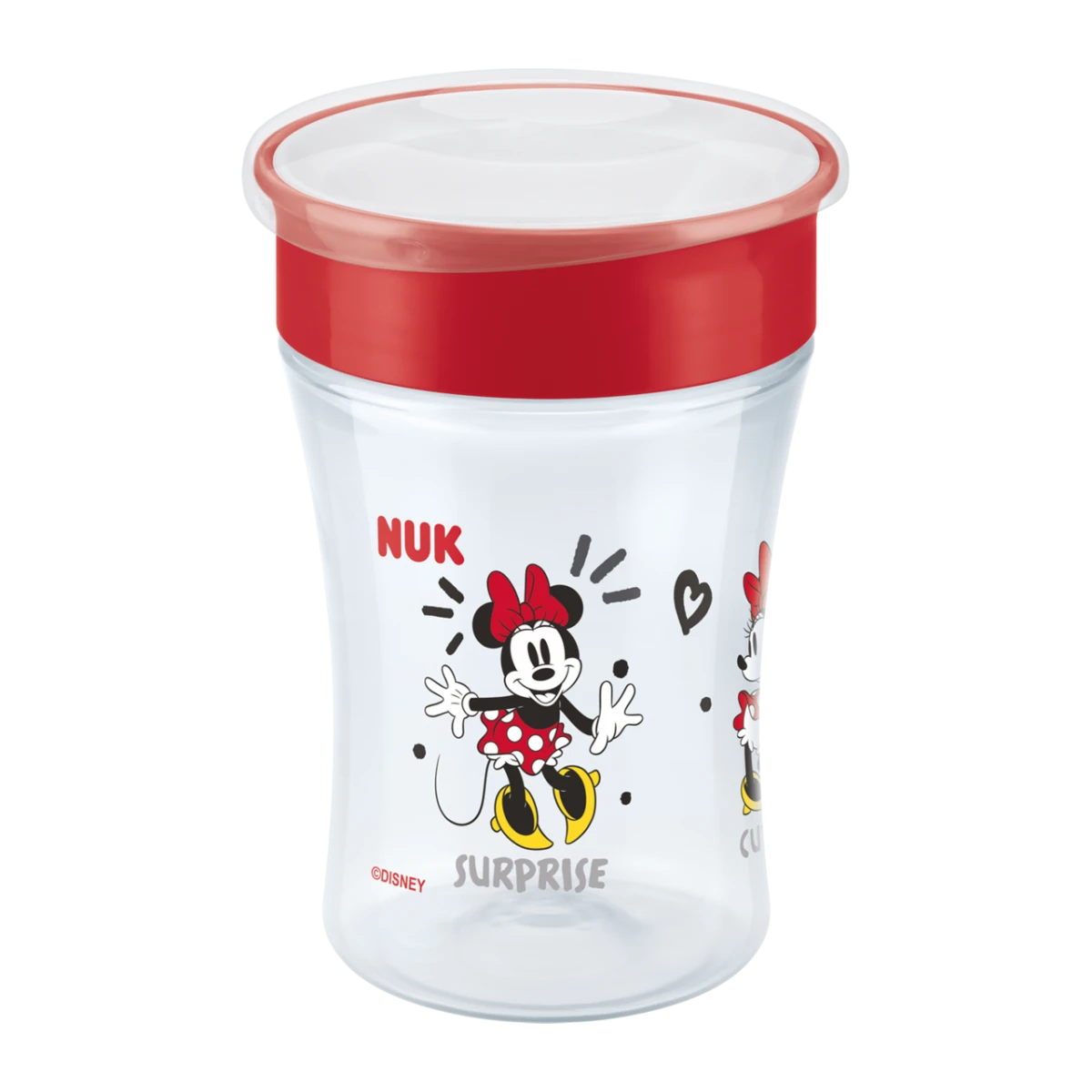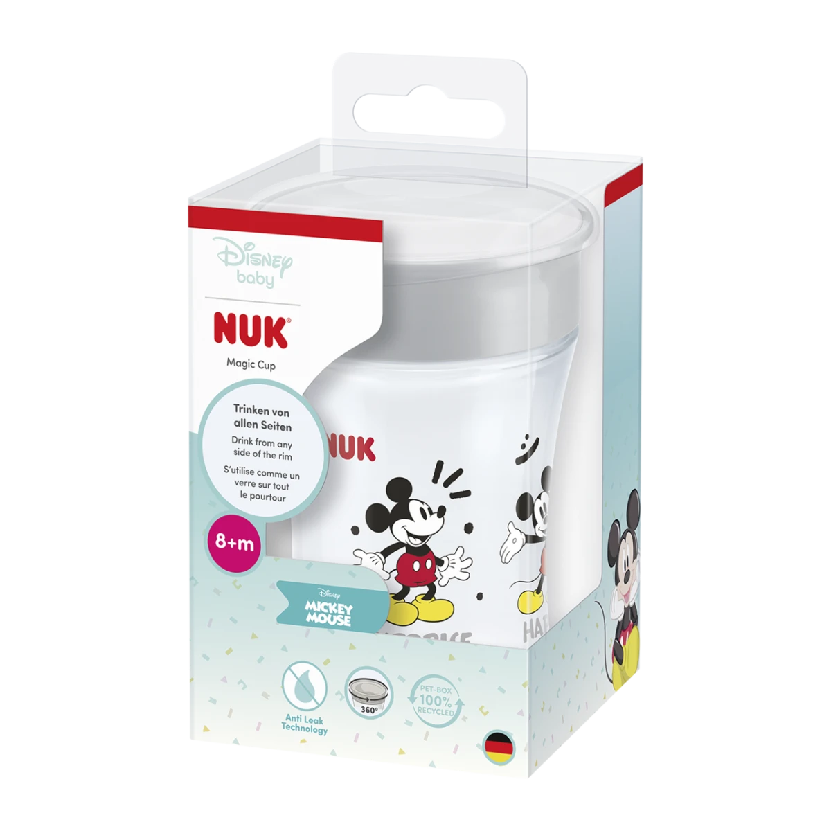 Magic Cup NUK je vyroben z vysoce kvalitních a silných materiálů, neobsahuje BPA a je vyzdoben roztomilými motivy. Skládá se z několika jednotlivých částí, které lze jednoduše rozložit a vyčistit: jednoduše je vložte do myčky nádobí. A aby byl kouzelný hrneček NUK čistý i na cestách a nepoškodil se, obsahuje další ochranné víčko.