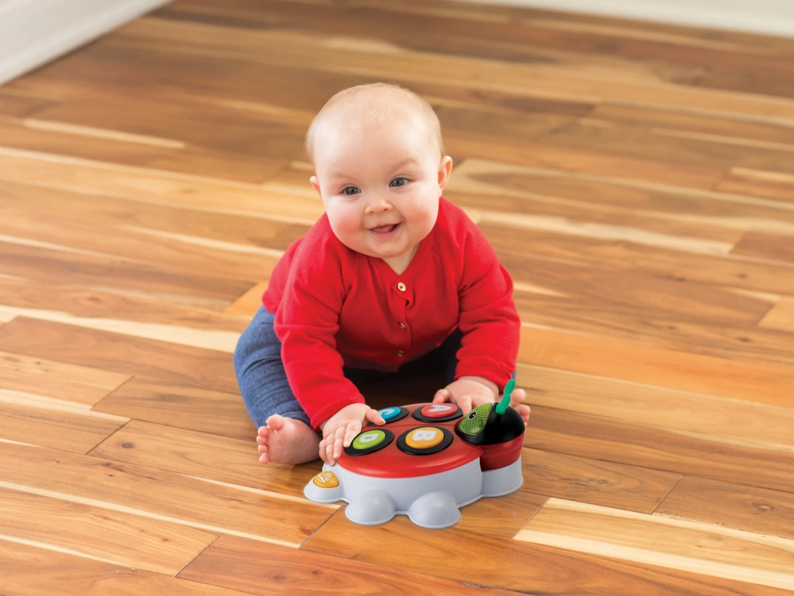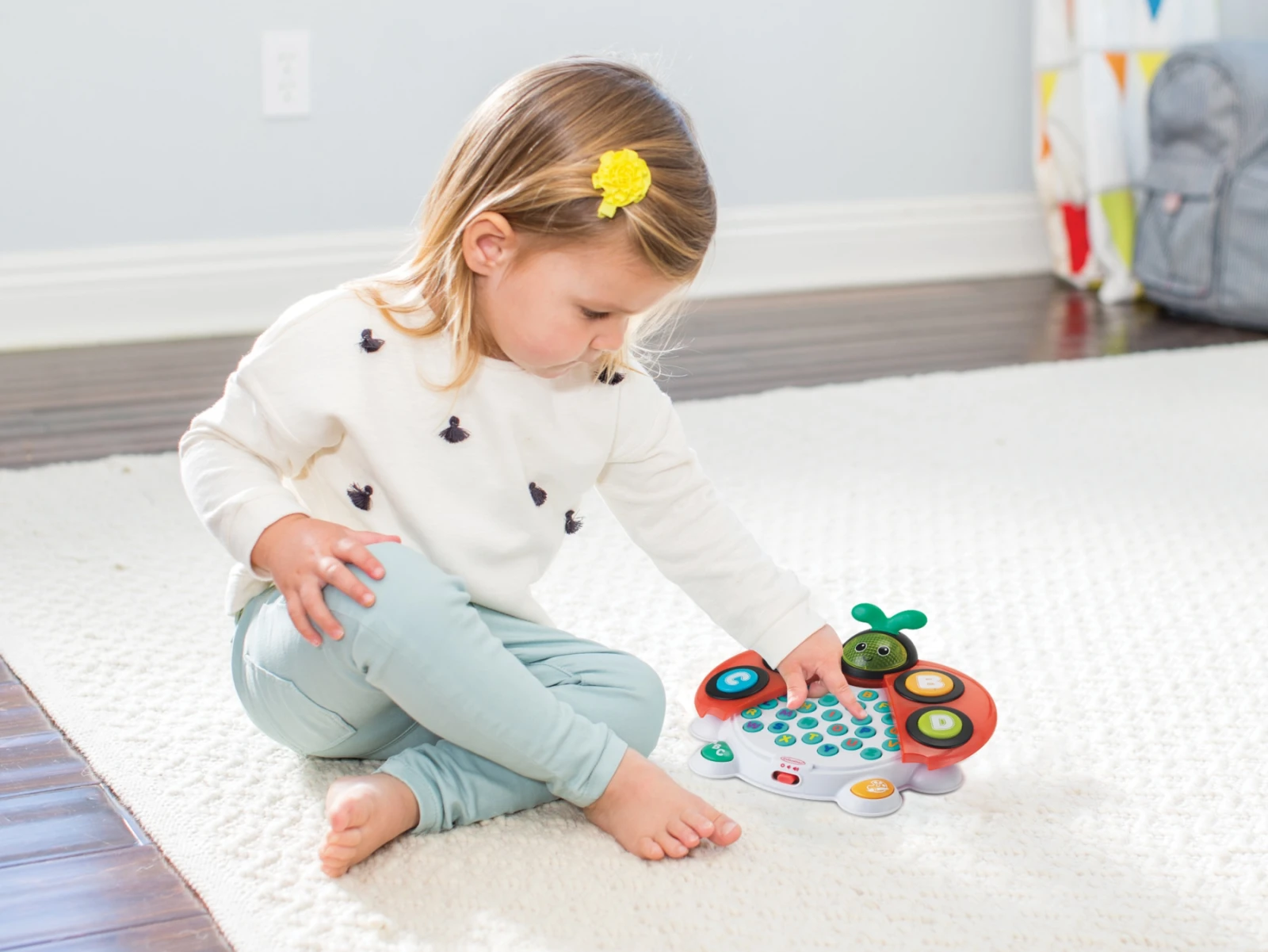 Hračka nabízí dva režimy hraní dle věku dítěte. Pro nejmenší děti jsou vhodná velká tlačítka ABCD, větším dětem stačí otevřít křídla berušky a zpřístupnit tak kompletní abecedu.