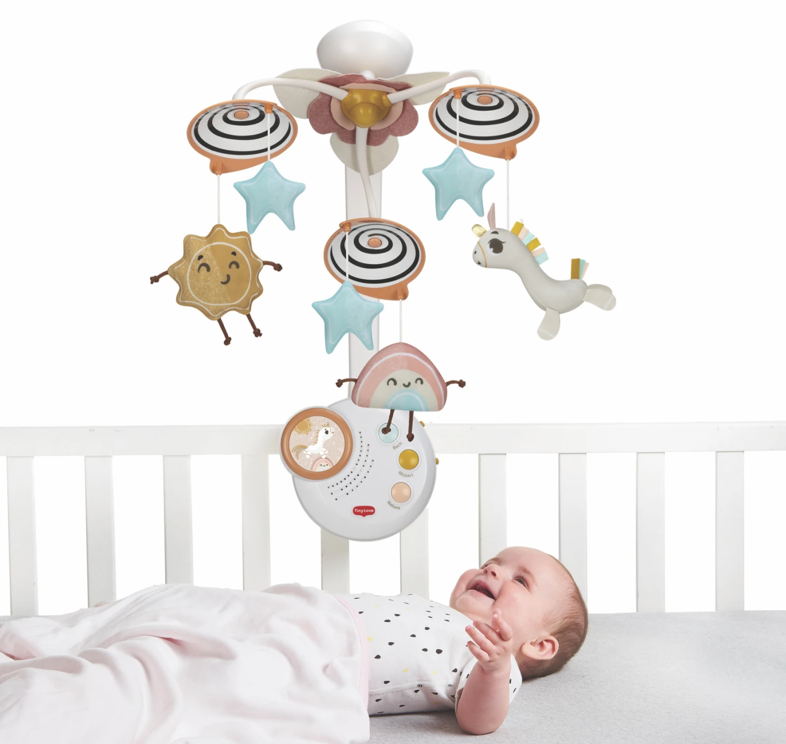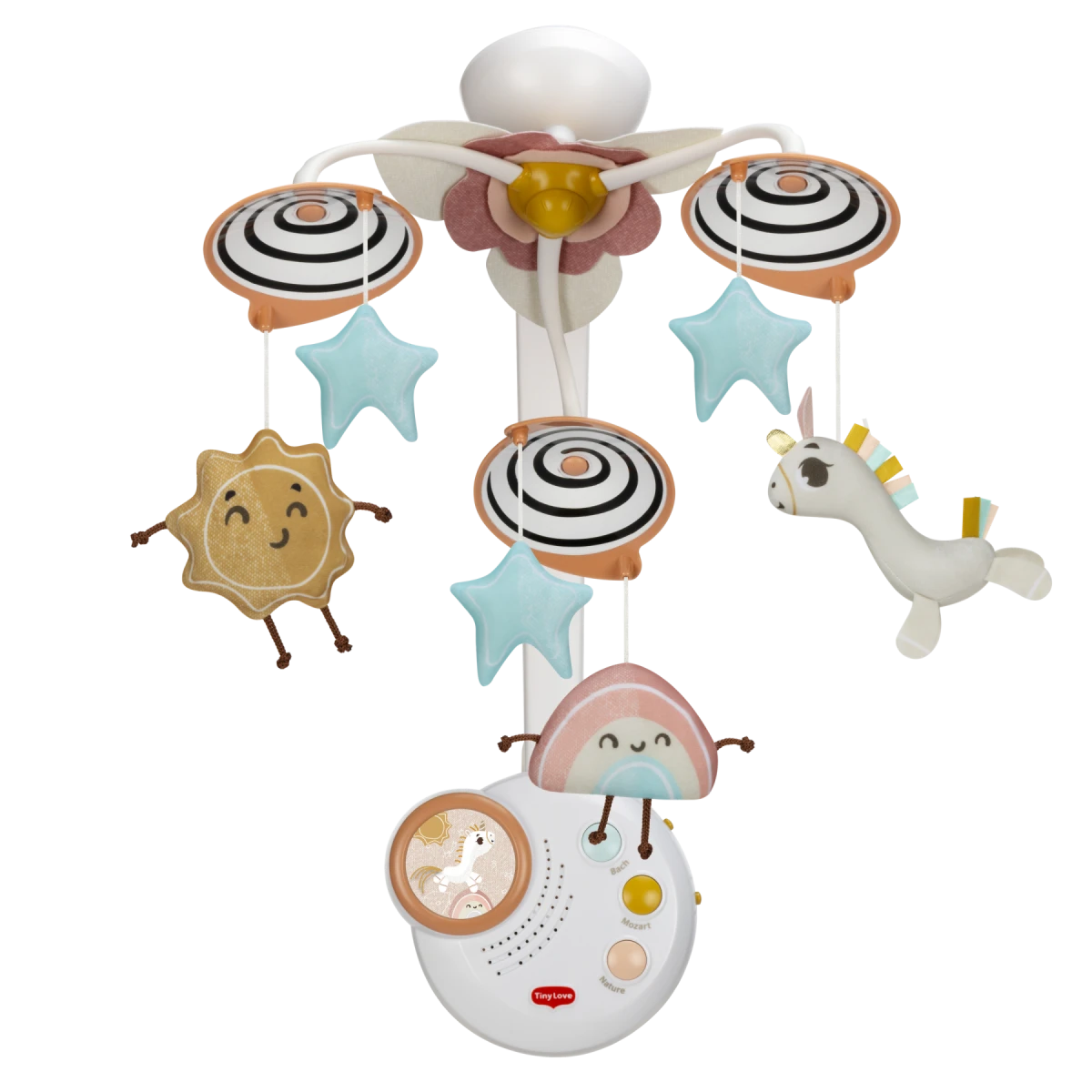 - Kolotoče nad postýlku, strojky a projektory Tiny Love pro holky