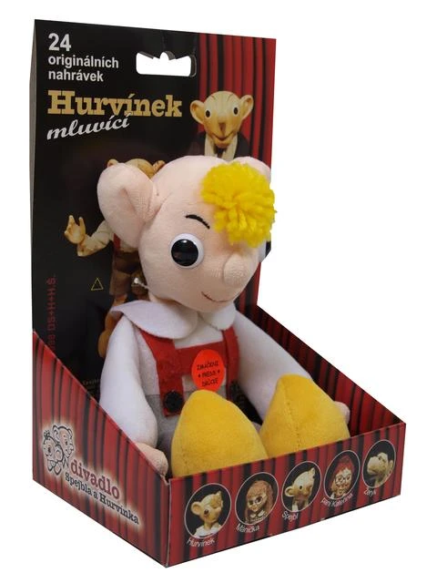 Hurvínek Vás pobaví spoustou originálních vtipů a veselých hlášek namluvených Martinem Kláskem alias Hurvínkem. Vyměnitelné baterie 3xLR44 jsou součástí. Pratelný bez zvukového modulu. 22 originálních nahrávek