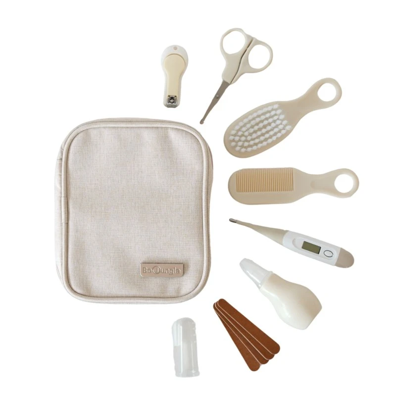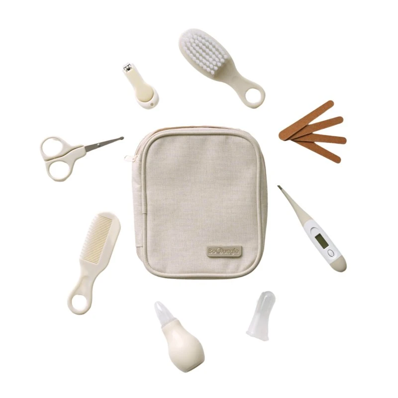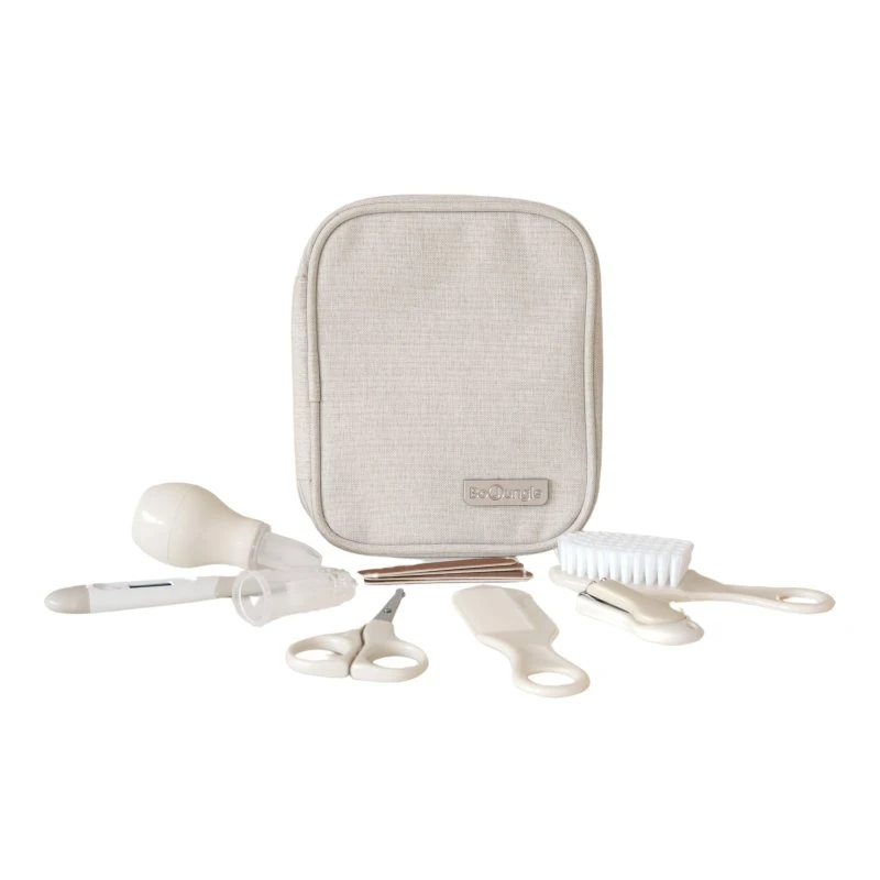 - obsahuje: pilníky, nůžky a kleštičky na nehty, silikonový kartáček na zoubky, hřeben a - kartáč na vlasy, digitální flexibilní teploměr, nosní odsávačku