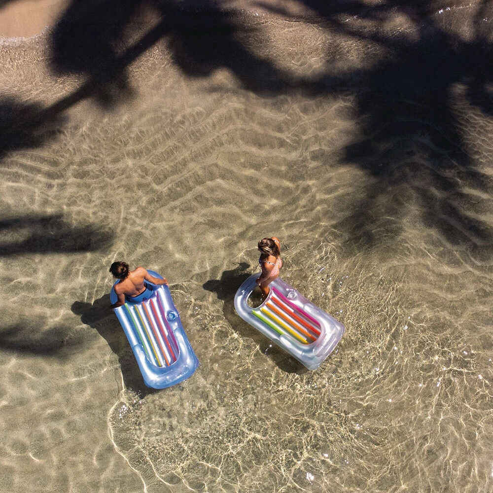 Lehká a snadno přenosná konstrukce umožňuje rychlé nafouknutí i jednoduché sbalení, takže si ho můžete vzít kamkoliv s sebou – na dovolenou, k bazénu i k moři.