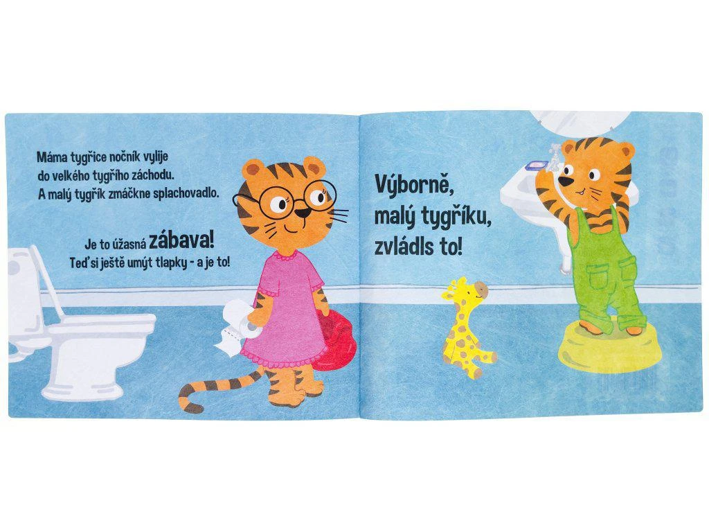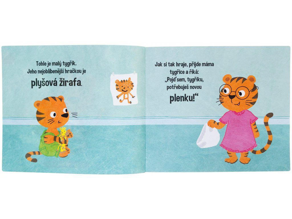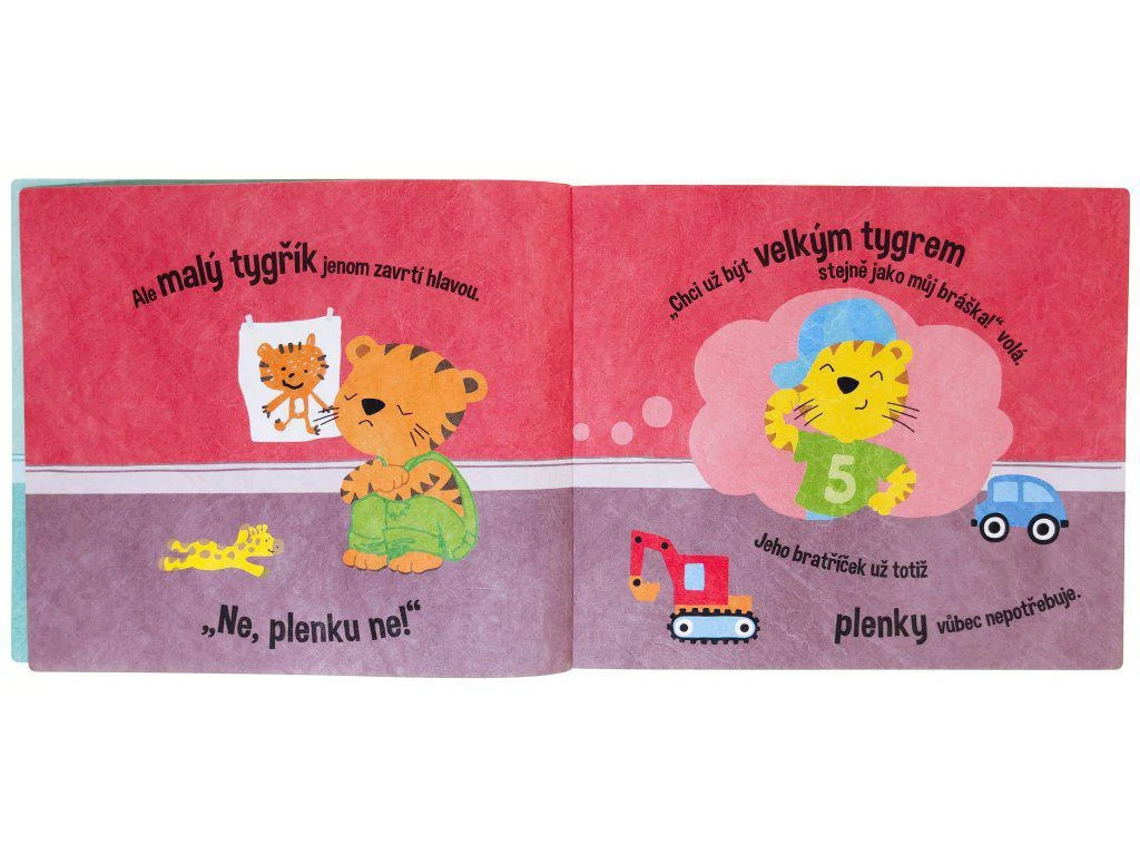 Knížky jsou z pevného a voděodolného materiálu - ideální pro batolata od 6 měsíců. Tuto knížečku může dítě muchlat i žužlat a nic se jí nestane, dá se v klidu dále používat. Také dítě je v bezpečí. Nemůže z ní nic odtrhnout, sníst ani vdechnout. Stránky jsou pevně sešité. Malý tygřík už nechce nosit plínky. Je přece dost velký! Máma tygřice naštěstí dostane nápad. Co se asi skrývá v té krabici? Že by to byl nový nočník pro tygříka? V této obrázkové knížečce si nejmenší čtenáři přečtou příběh o malém tygříkovi, který se učí chodit čurat na nočník. Připraví je to na jejich vlastní přechod z plen na nočník a na záchod. Knížečka obsahuje barevné ilustrace a jednoduchý příběh o tom, co všechno znamená trochu povyrůst. Rozvíjí řeč, vnímavost a jemnou motoriku.