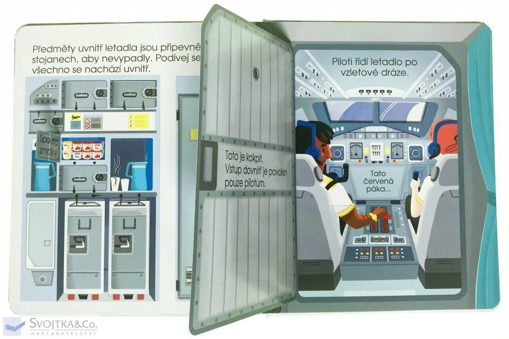 Pilotní kabina, motory, zavazadlový prostor nebo vzletová a přistávací dráha – to vše ukrývá mnoho zajímavostí a tajemství. V této knize se děti dozví, jak se doplňuje palivo, co všechno technici kontrolují před letem a proč je v pilotní kabině červená páka. Zjistí také, kde si piloti mohou během dlouhého letu odpočinout.