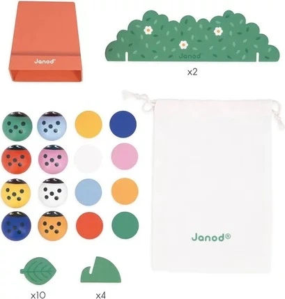 K hře je dodáváno také bavlněné sáček na uskladnění. Pohodlné na hraní kdekoli! Paměťová hra se vyvíjí a přizpůsobuje potřebám každého dítěte, protože má více než jednu úroveň obtížnosti. Vaše dítě může začít tím, že identifikuje barvu chybějící berušky, která se skrývá pod květináčem. Poté se naučí zpaměti reprodukovat sled barev pomocí keřů a dřevěných pultů. Ideální na rozvoj jejich paměti a zároveň zábavu!