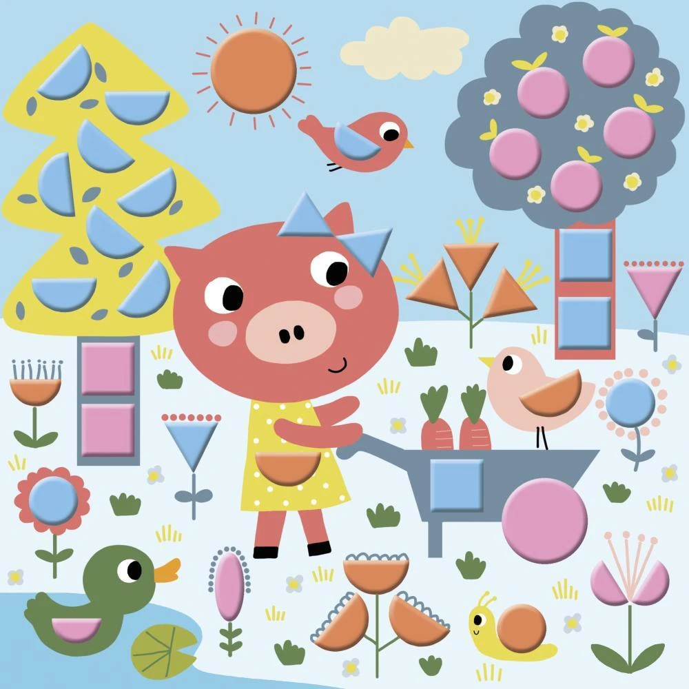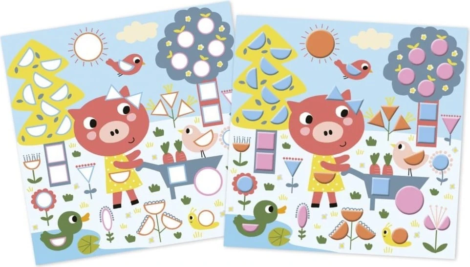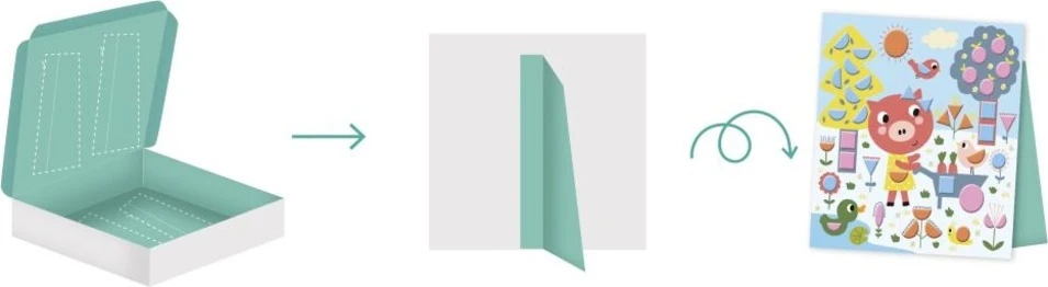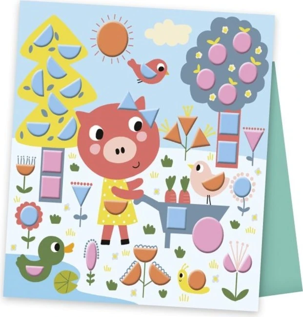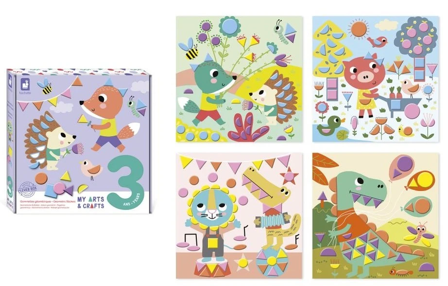 Obsah: 4 obrázky pro dotvoření, 5 listů s geometrickými nálepkami. Obal krabice lze použít a složit jako stojan na obrázky. Kreativní sada Janod rozvíjí a podporuje tvoření, dovednost a představivost u dětí. Kreativní hračky pro děti nezabírají moc místa, jsou vhodné na cesty i na doma, ve zdraví i nemoci a zabaví děti na dlouhé hodiny. Tvoření různými technikami podporuje soustředění a koncentraci, přirozené zkoumání a výtvarné schopnosti.