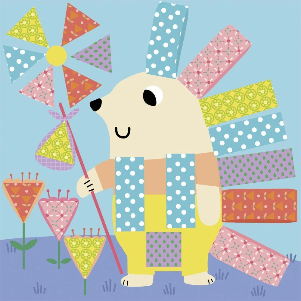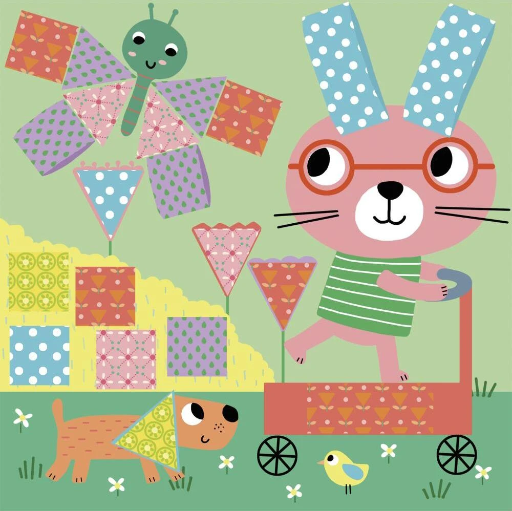 Úkolem této sady je vystřihnout a nalepit vzorované papírky na pozadí se zvířátky a dokončit tak obrázek. Děti se zabaví doplňováním barevných scén s motivy zvířat, jako je ježek, králík nebo krokodýl. Nůžky jsou bezpečné pro děti a stříhají pouze papír. Dokončení všech 4 obrázků trvá přibližně 1,5 hodiny.