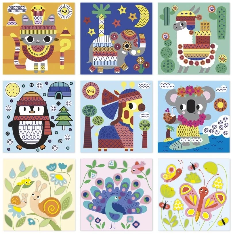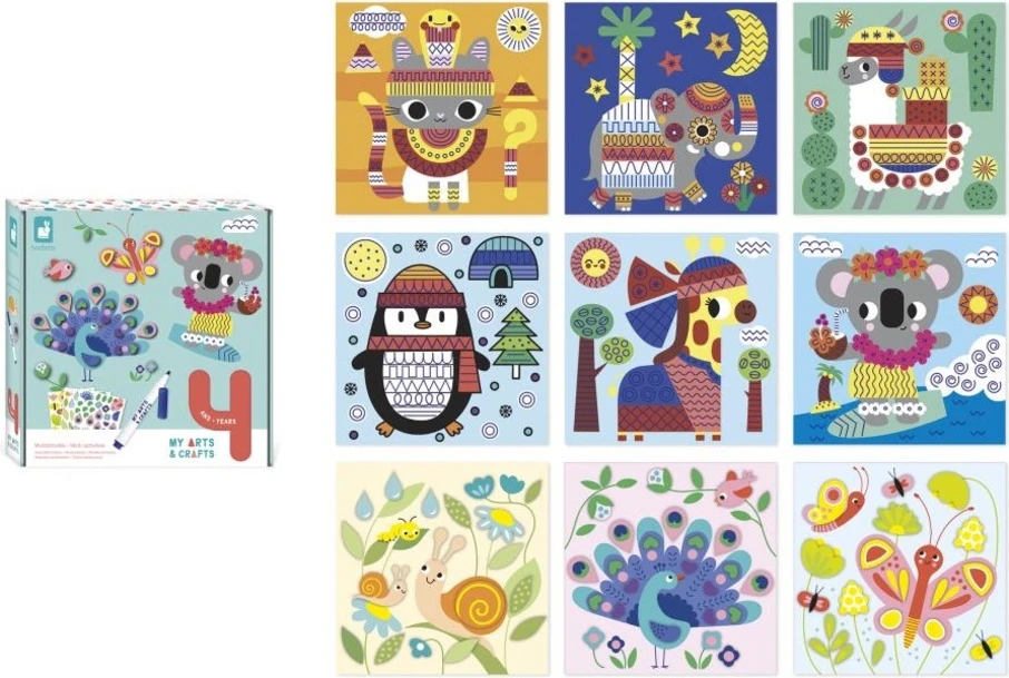 Tato kreativní sada je součástí řady My Arts & Crafts, která se může pochlubit mimořádně roztomilými zvířátky v pastelových barvách a představuje malým dětem první praktické řemeslné činnosti. S touto kreativní sadou se vaše dítě zabaví dokončením barevných obrázků na téma zvířátka: lama, slon, tučňák, motýl, páv či koala.