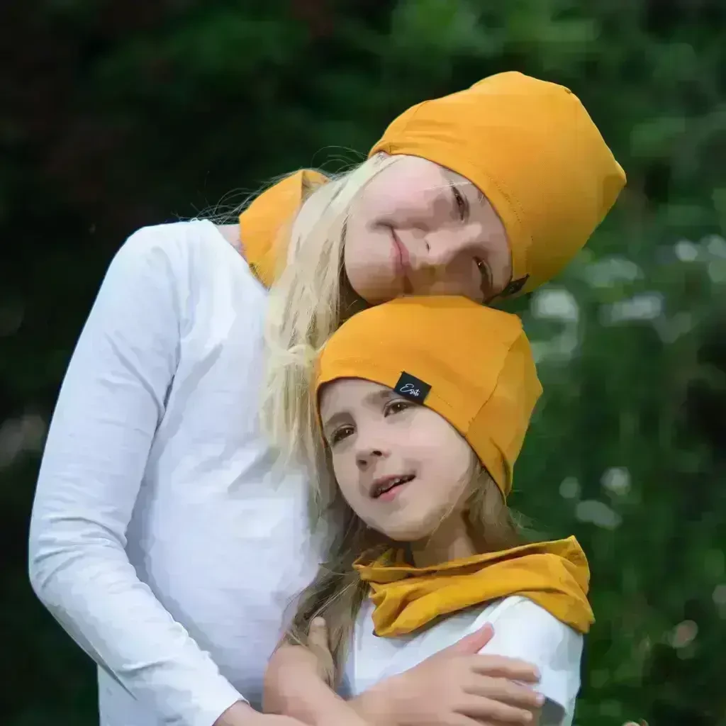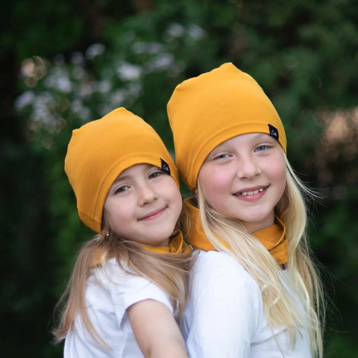 - Podzimní čepice pro děti bavlna, pro holky i kluky - unisex, okrová