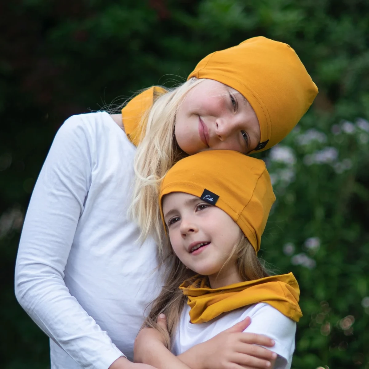 - Podzimní čepice pro děti ESITO bavlna, pro holky i kluky - unisex, okrová, nasazovací