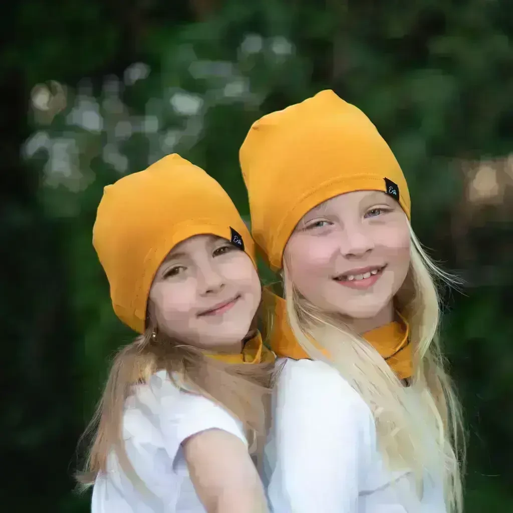 - Podzimní čepice pro děti bavlna, pro holky, okrová, nasazovací