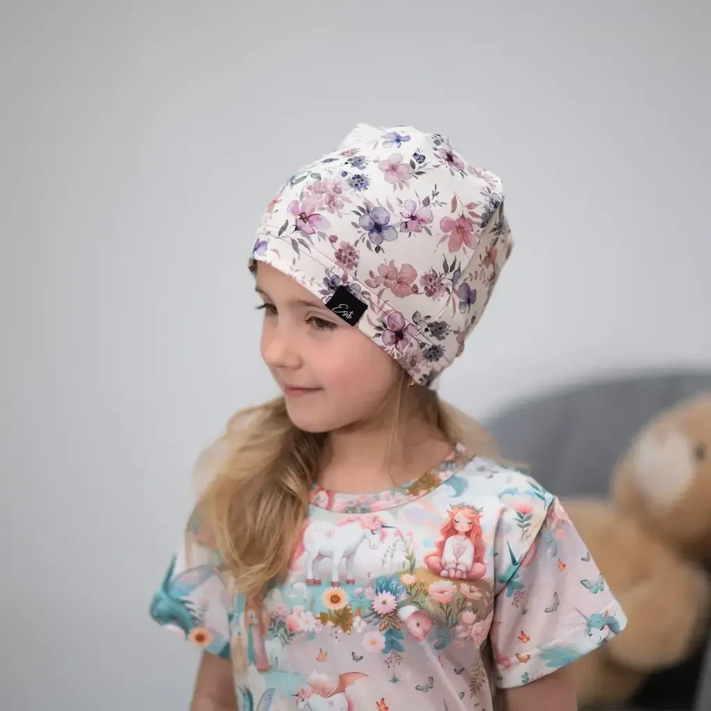 Jarní čepice Violet flowers Cream - smetanová Esito