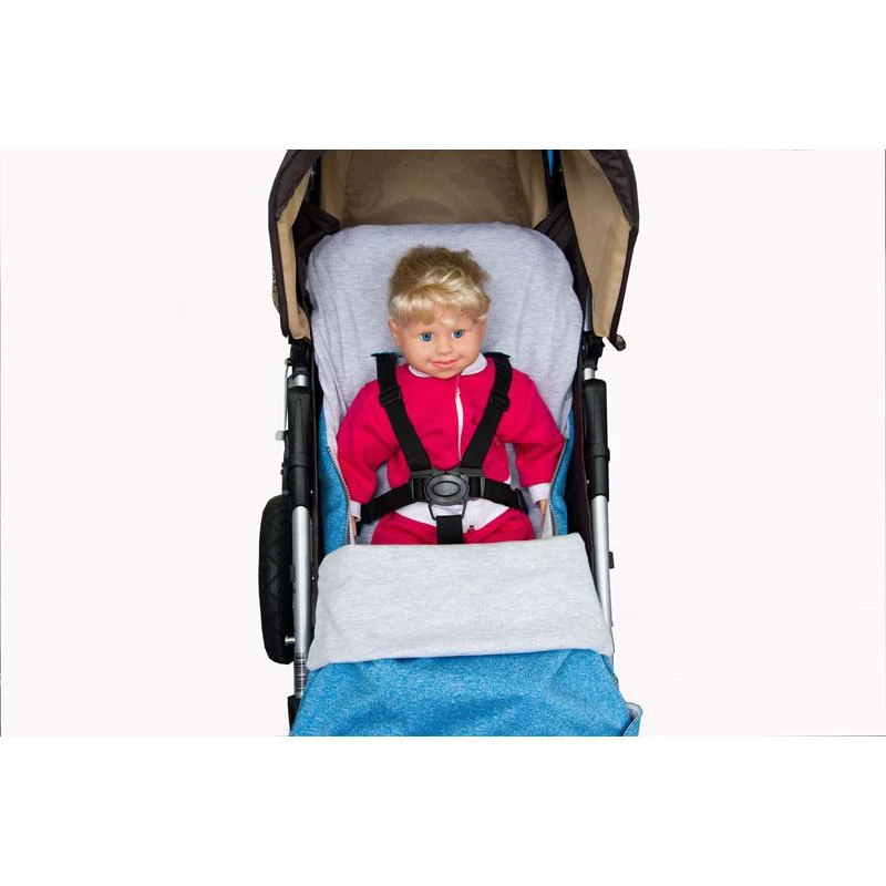 - okolo hlavičky je „tunýlek“ s gumičkou, který lze ohnout za opěradlo a stáhnout brzdou, díky tomu dobře drží fusak na zádech kočárku.