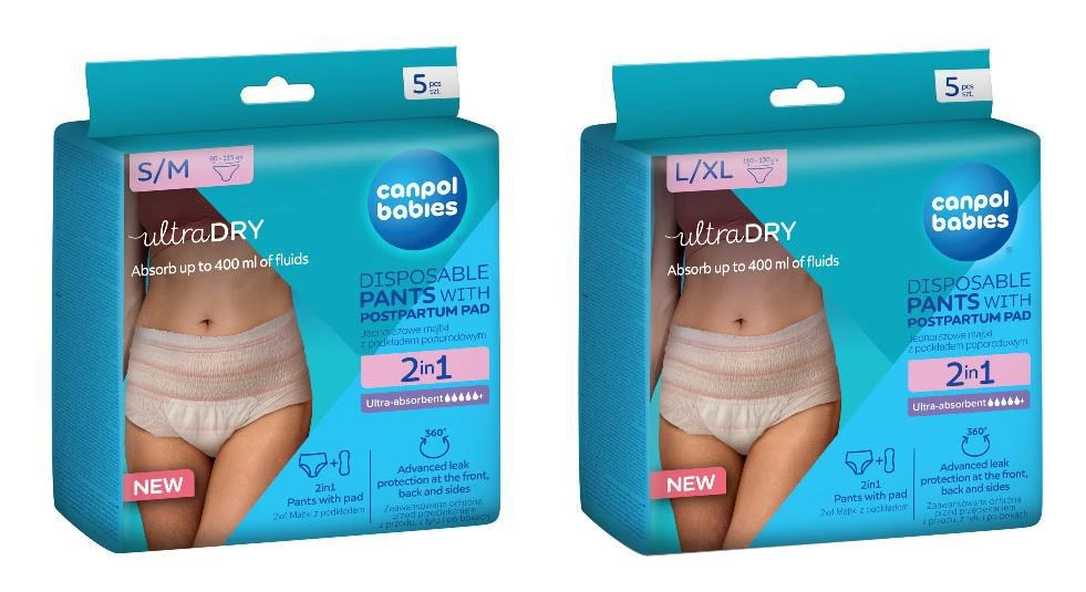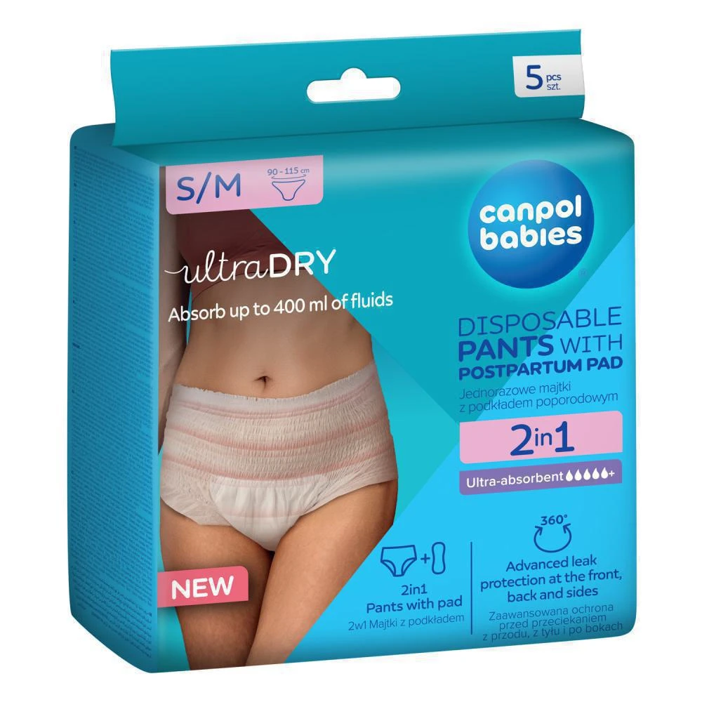 Jednorázové poporodní kalhotky s vložkou 2 v 1, 5 ks Canpol babies