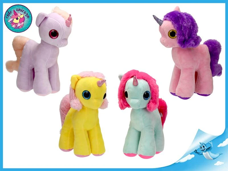 Plyšový jednorožec, stojící vysoký cca 28 cm. V nabídce 4 barvy. Cena za 1 ks