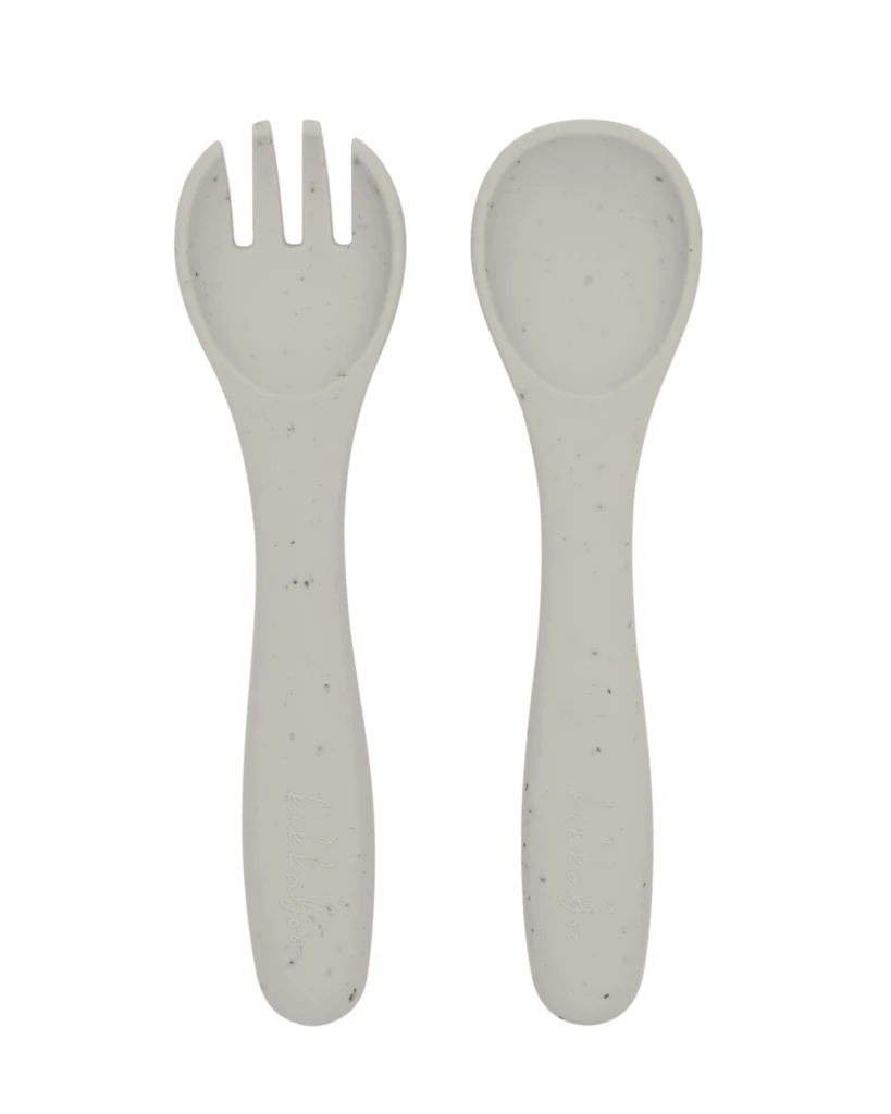 Lžička a vidlička ergonomického tvaru s měkkými hranami šetrnými k dětským dásním