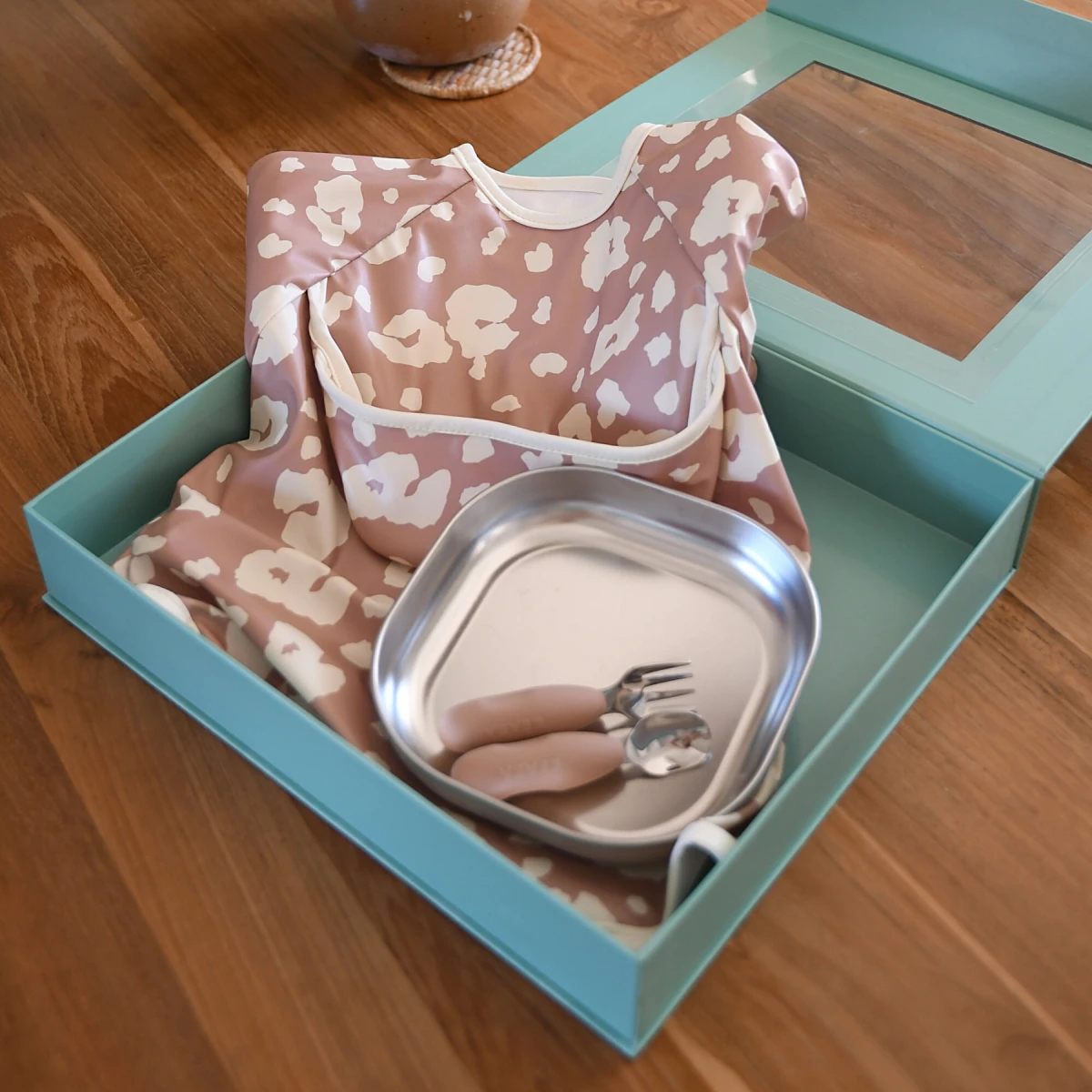 Lžička a vidlička byly vyvinuty ve spolupráci se specialistou na dětské krmení. Krátká, zaoblená rukojeť sedí do malých ruček, mělká lžička pomáhá nabírat přiměřené množství a vidlička se zaoblenými hroty je zcela bezpečná. Kombinace silikonu a nerezu dělá z příboru dlouhodobého pomocníka pro rozvoj samostatnosti.