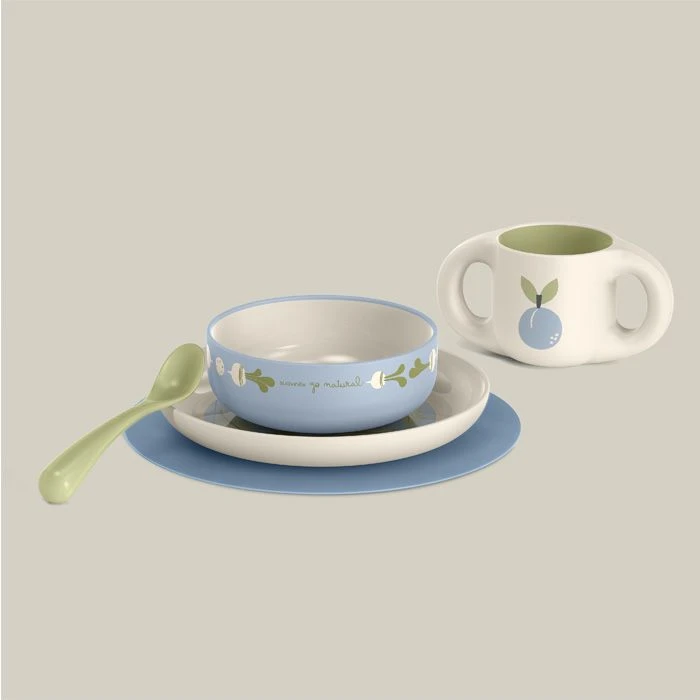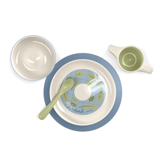 Jsou praktické, lehké (díky lehkosti je může dítě pohodlně používat samo) a nerozbitné. Jejich tvary a zaoblené hrany dodávají nutnou bezpečnost, abychom je bez obav nechali jíst samostatně. Obsahuje praktickou protiskluzovou podložku, aby talířek neklouzal.
