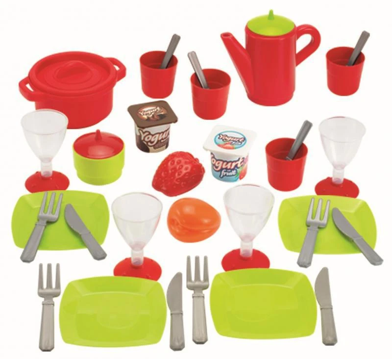 Nádobí vypadá jak opravdové, přesto má příjemné dětské barvy