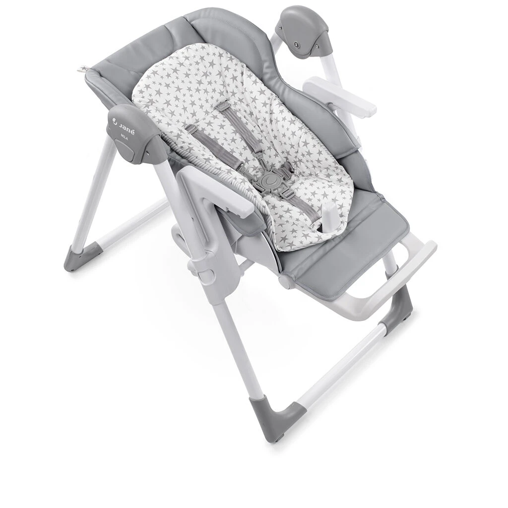 Dětská jídelní židlička Jané Mila kombinuje komfort pro miminko a plnohodnotné sezení u stolu pro batole až do 3 let. V prvních měsících života slouží jako pohodlné lehátko pro miminko, od cca 6 měsíců se jednoduše změní na jídelní židličku, aby se dítě mohlo zapojit do společného stolování.
