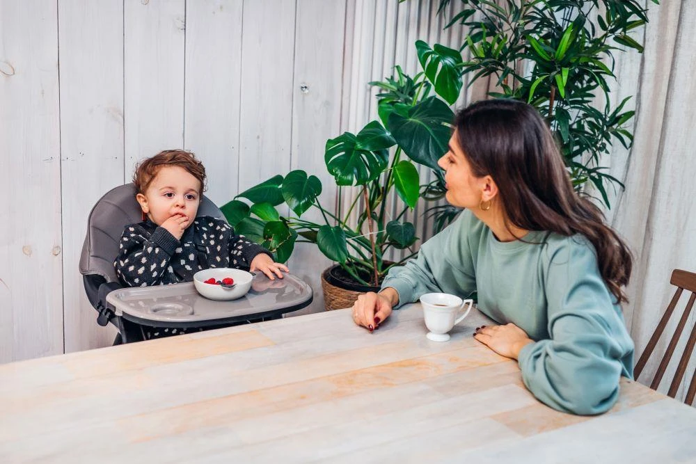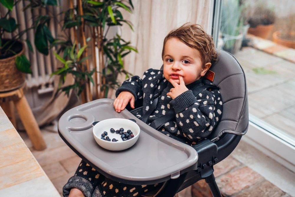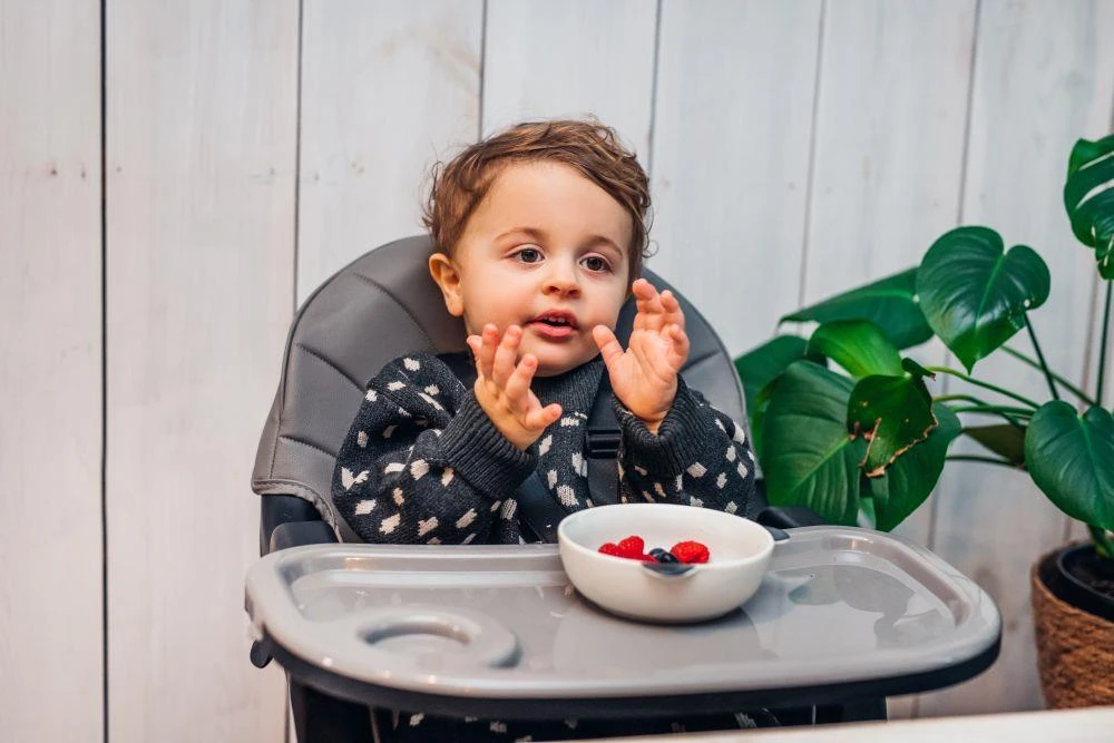 - Když se dítě naučí sedět, může používat vysokou židli s podnosem na krmení.