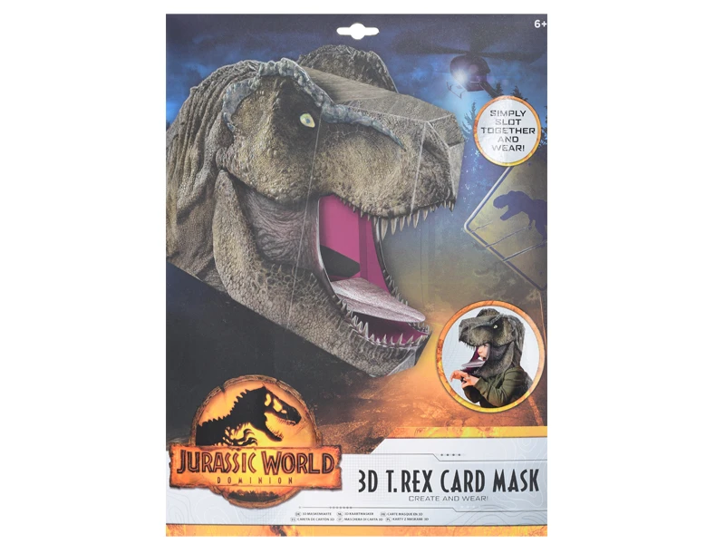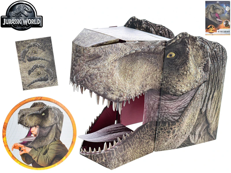 Jurský svět 3D maska skládací s nálepkami a motivem T-Rexe