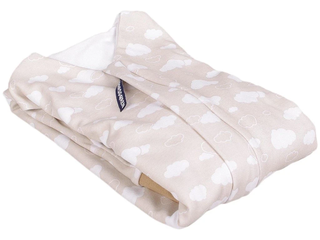 Lehký spací pytel vyrobený ze dvou vrstev látek - vnější strana je vyrobená z potištěné 100% bavlny s motivem obláčků a podšívka je ze 100% bambusové viskózy. Délka spacího pytle je délka dítěte od ramen dolu k chodidlům.