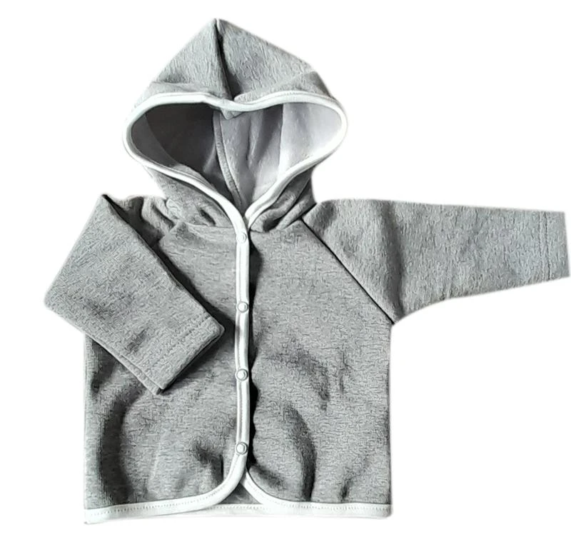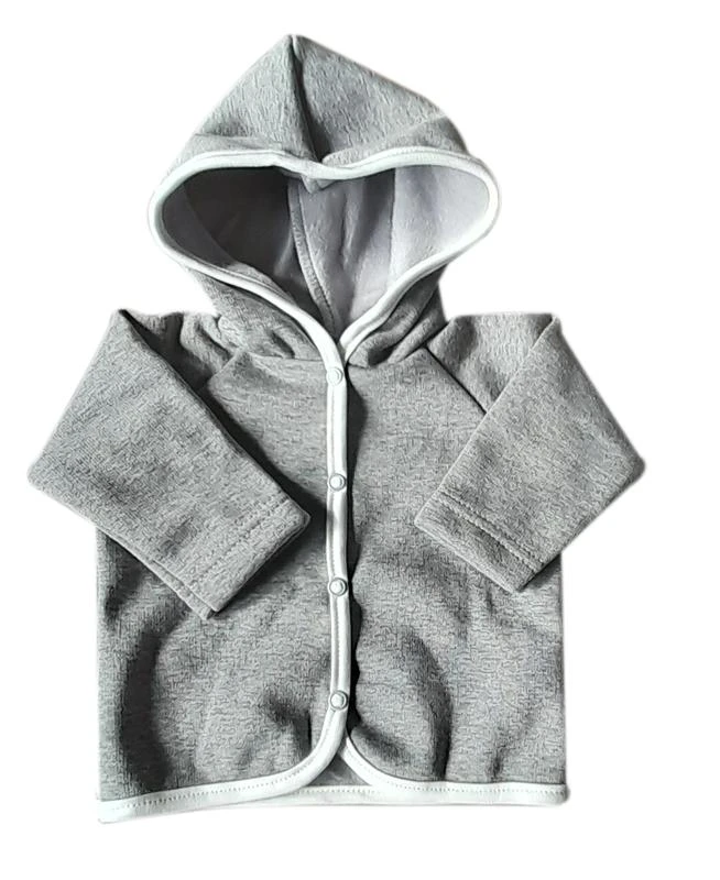 Kabátek svetrovina s kapucí MKcool Šedý s bílým lemem Vel. 56