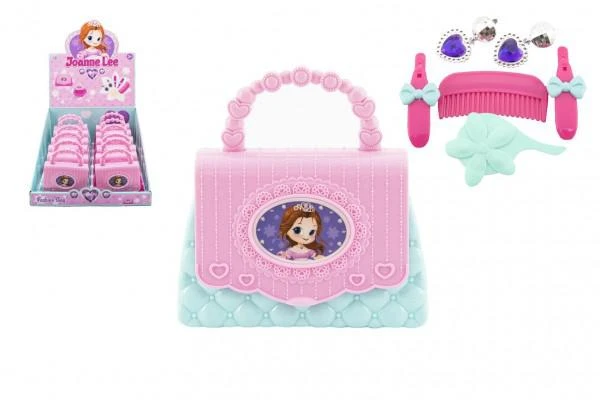Krásný módní doplněk pro mladé slečny nebo pro větší panenky. Kabelka je vyrobena z kvalitního plastu a uvnitř najdete spoustu doplňků jako hřeben, sponky do vlasů a náušnice, též vyrobeny z plastu. Rozměry výrobku 12,5 x 3 x 4,5cm.Vhodné pro děti od 3 let.