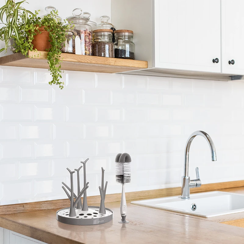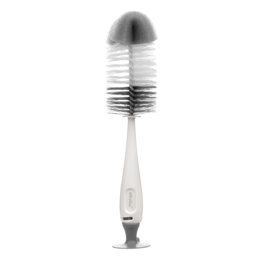 Kartáč na láhve s houbičkou a přísavkou - šedý Akuku