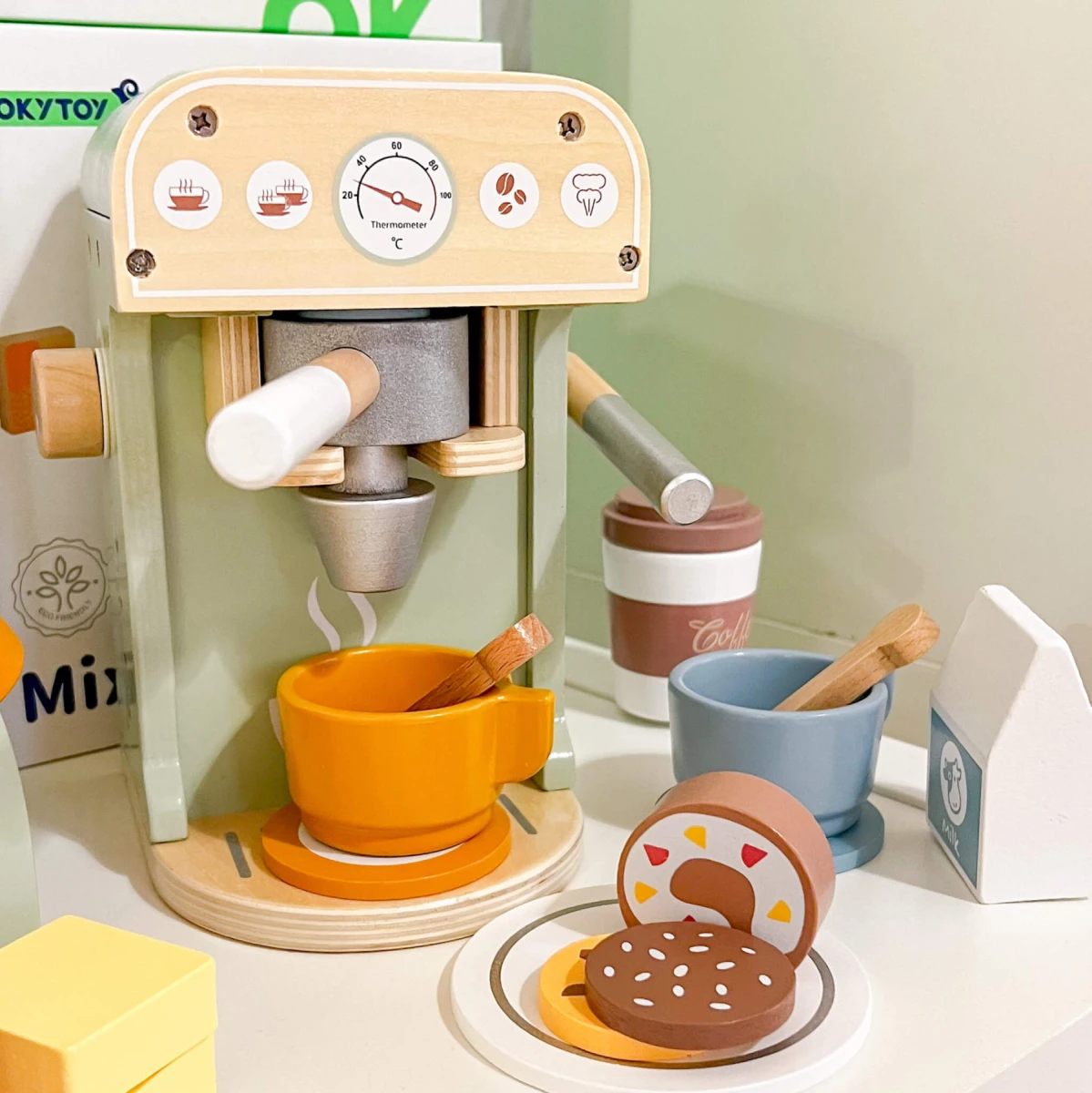 Představte svému dítěti rozkošný svět hraní na hrdiny pomocí pastelové dřevěné kávovary od Tooky Toy. Tato nápadná hračka, navržená v jemných pastelových odstínech, je dokonalým doplňkem každé dětské herní kuchyně. Není to jen hračka; Je to brána k imaginativní hře, která dětem umožňuje napodobovat chování a profese dospělých, jako je baristka nebo příprava snídaně.