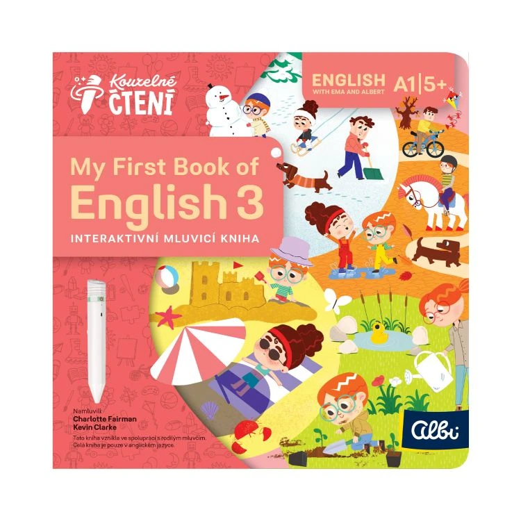 Ema a Albert nás tentokrát provedou celým rokem a představí nám i svou rodinu. Děti se v každém prostředí seznámí s 10 slovesy a několika základními slovíčky. Každé slovo uslyší také ve větě a své znalosti si ověří pomocí kvízů. Součástí knihy jsou veselé písničky a melodie.