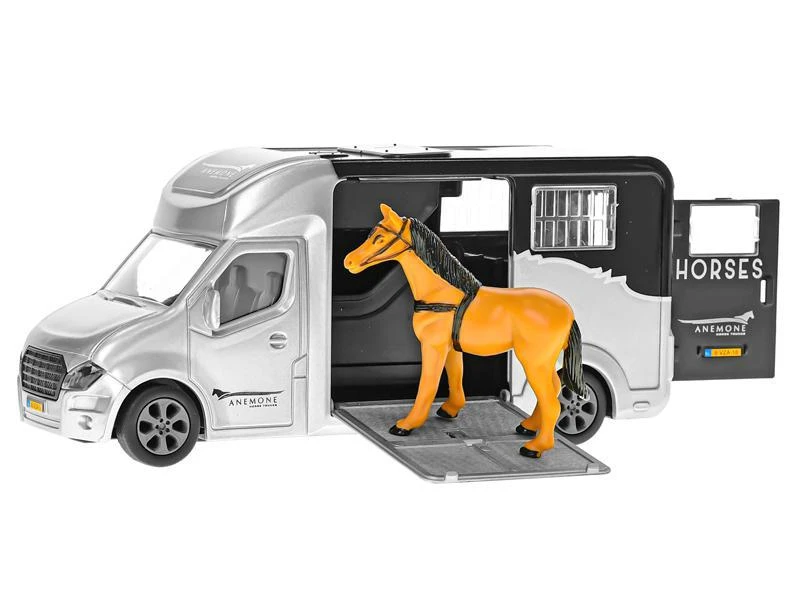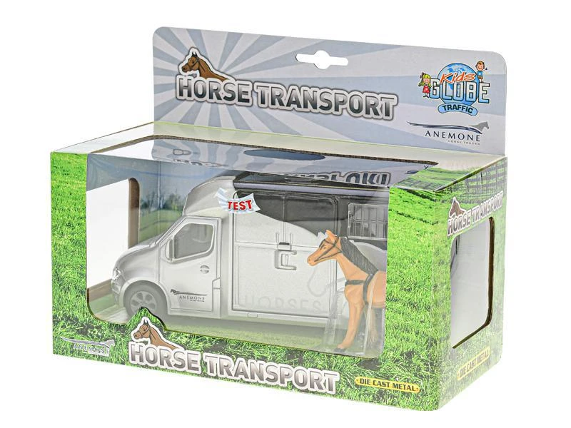 Krásný set pro všechny milovníky koní v podobě auta na přepravu koní a figurky hnědého koníka. Auto měří 20 cm, je na baterie a doplněno světelenými i zvukovými signály. Tento set je součástí kolekce Kids Globe, která obsahuje exkluzivní kovové kousky aut.