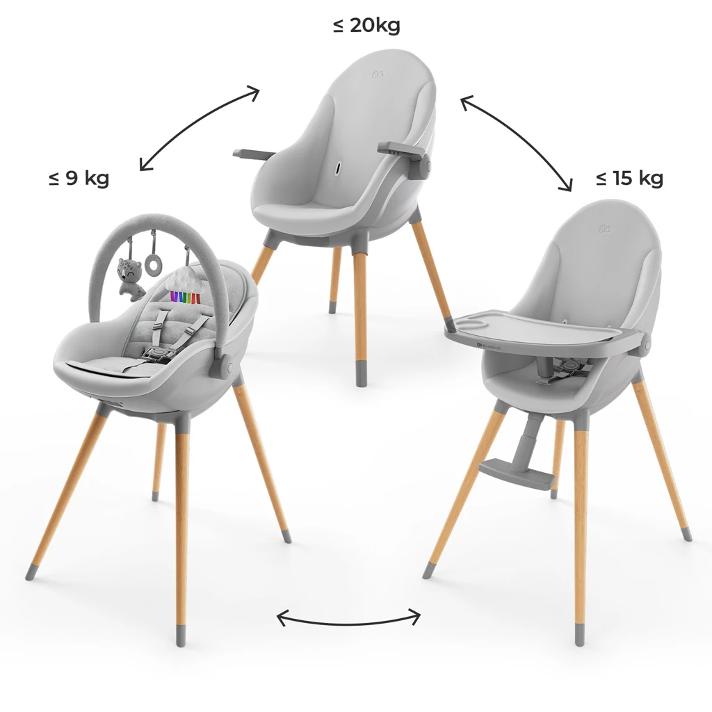 - Funkce 3v1: lehátko, jídelní židlička, židlička pro starší dítě (do 20 kg)