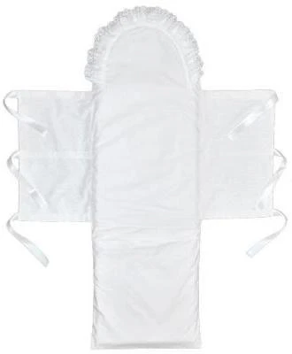 Klasická zavinovačka pro miminka je obdélníková s dvěma řadami vyšívaného krajkového kanýru o šířce 5 cm.