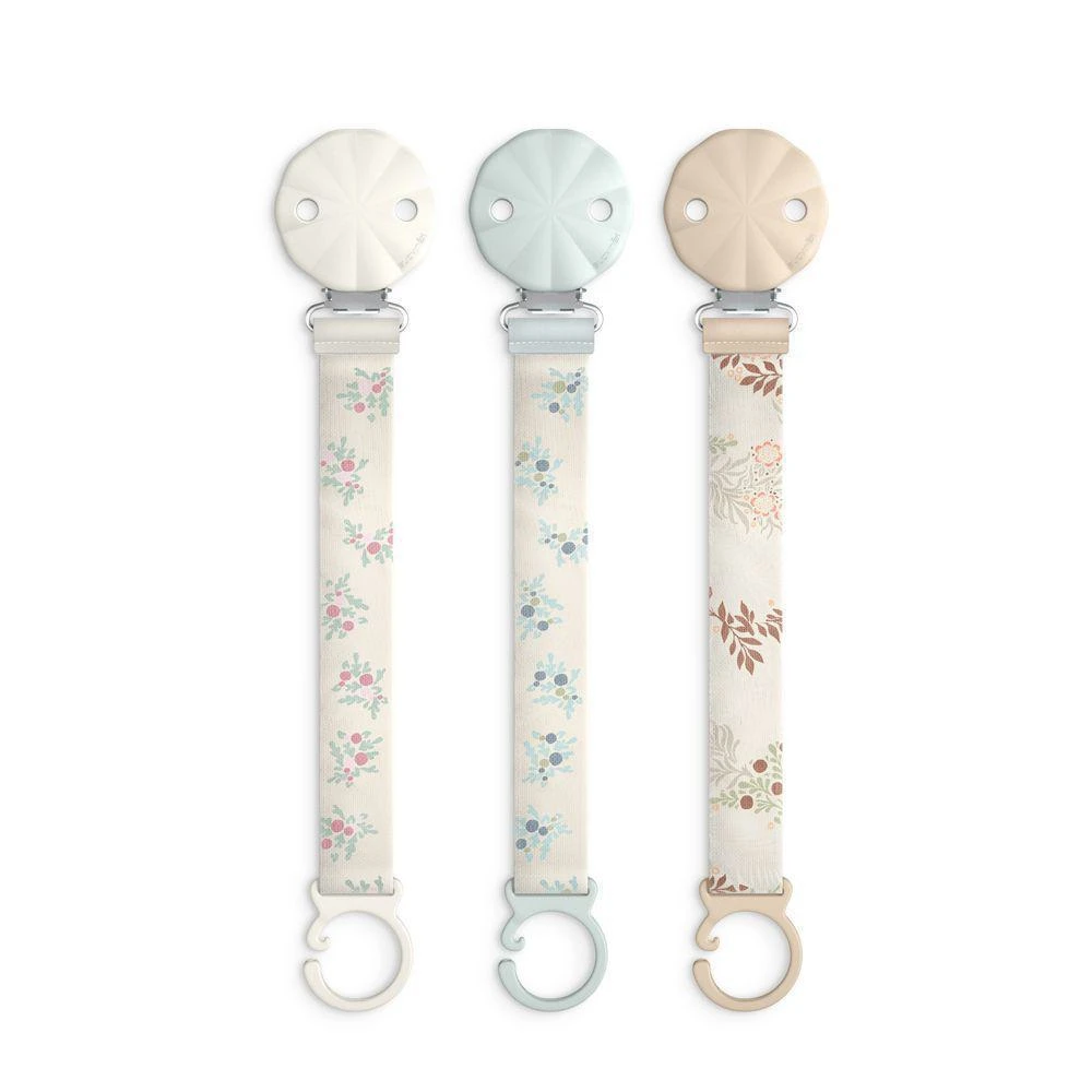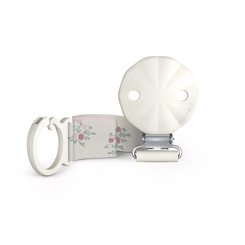 Připevněte klip k oblečení dítěte pomocí svorky. Druhý konec připevněte k dudlíku pomocí textilního poutka. Používejte vždy pod dohledem dospělé osoby.